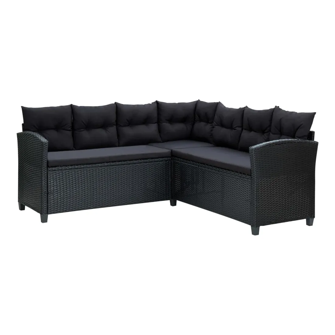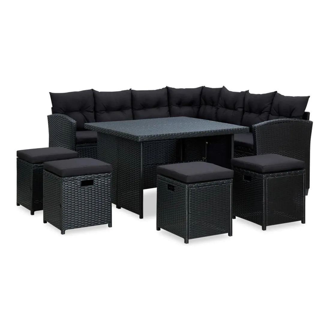 Profitez de votre espace extérieur pour discuter avec les membres de votre famille et vos amis dans votre espace extérieur sur cet ensemble de salon de jardin en résine tressée avec coussins ! Cet ensemble de salon d'extérieur confortable, doté d'un cadre en acier enduit de poudre recouvert de résine tressée, est robuste et facile à nettoyer, ce qui le rend idéal pour une utilisation quotidienne en plein air. Grâce à sa construction légère, vous pouvez le déplacer facilement. Les coussins bien rembourrés ajoutent un confort supplémentaire pendant votre temps de détente. Le canapé d'angle et les tabourets offrent suffisamment d'espace pour s'asseoir pour les réunions de famille. De plus, la table basse est idéale pour placer des boissons, de la nourriture et des objets de décoration. Remarque : nous vous recommandons de couvrir l'ensemble pendant la pluie, la neige et le gel.