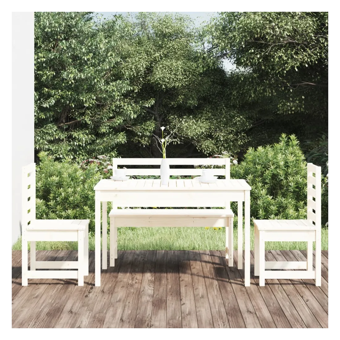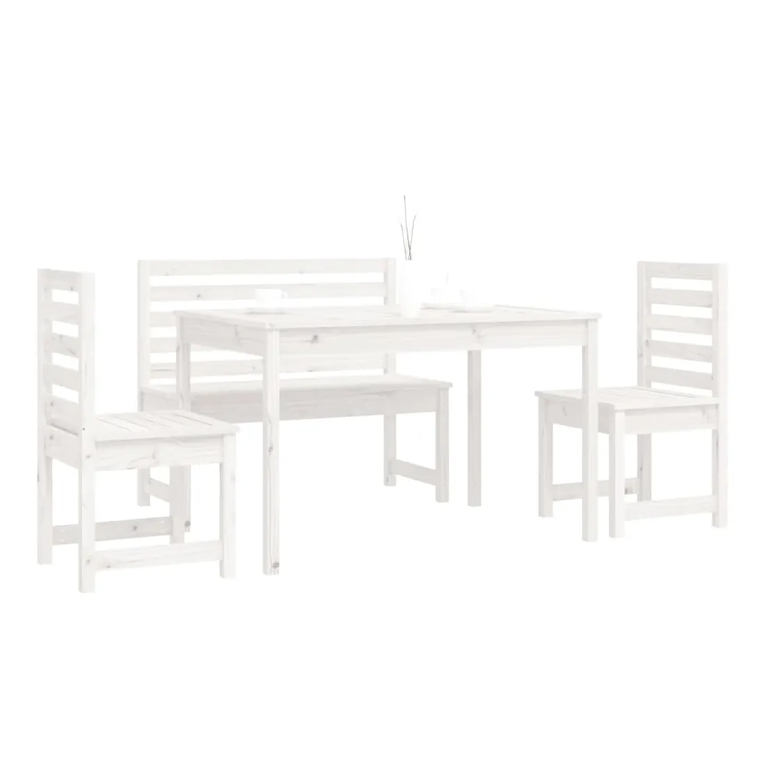 Ensemble à manger de jardin 4 pcs blanc bois massif de pin