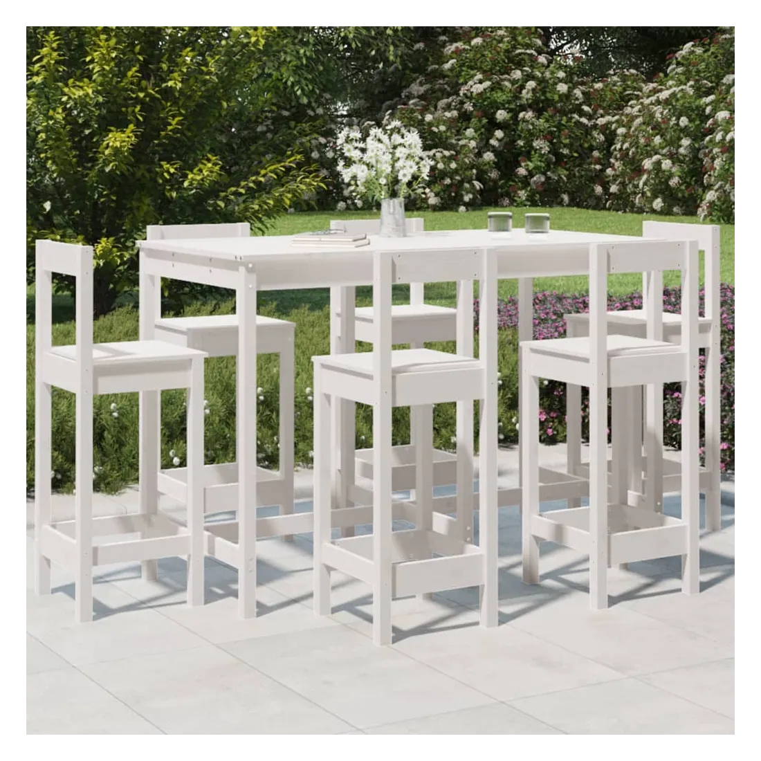 Ensemble de bar de jardin 7 pcs blanc bois de pin massif
