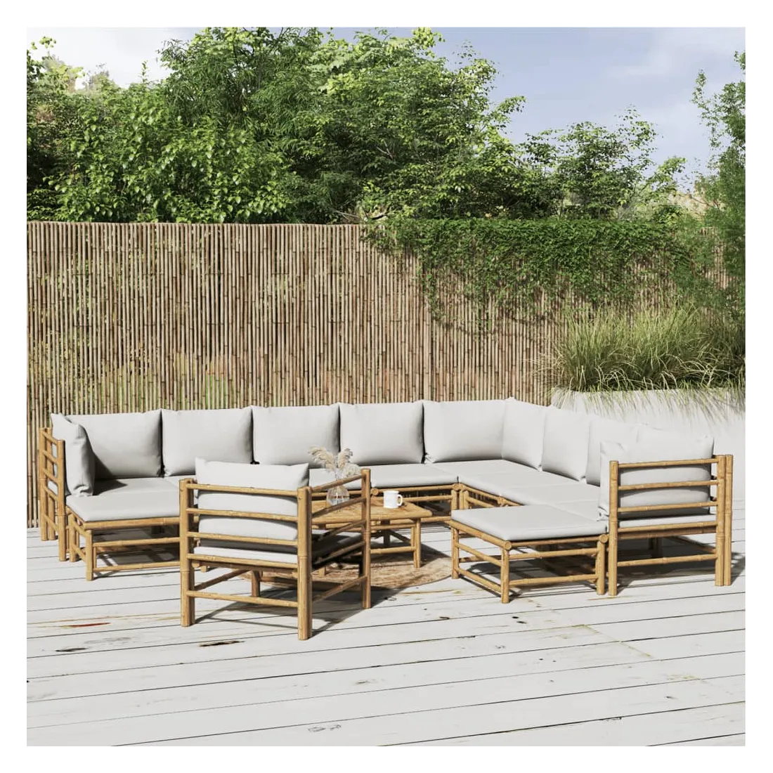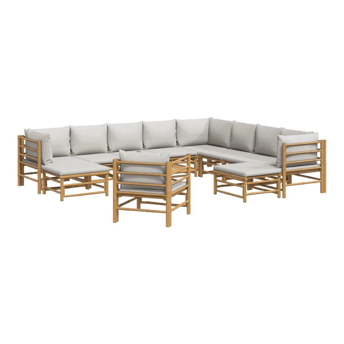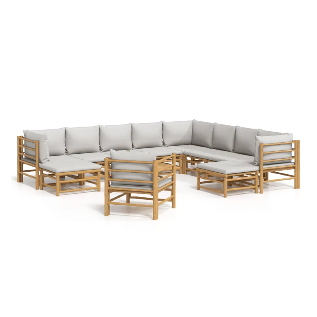 Salon de jardin 12 pcs avec coussins gris clair bambou