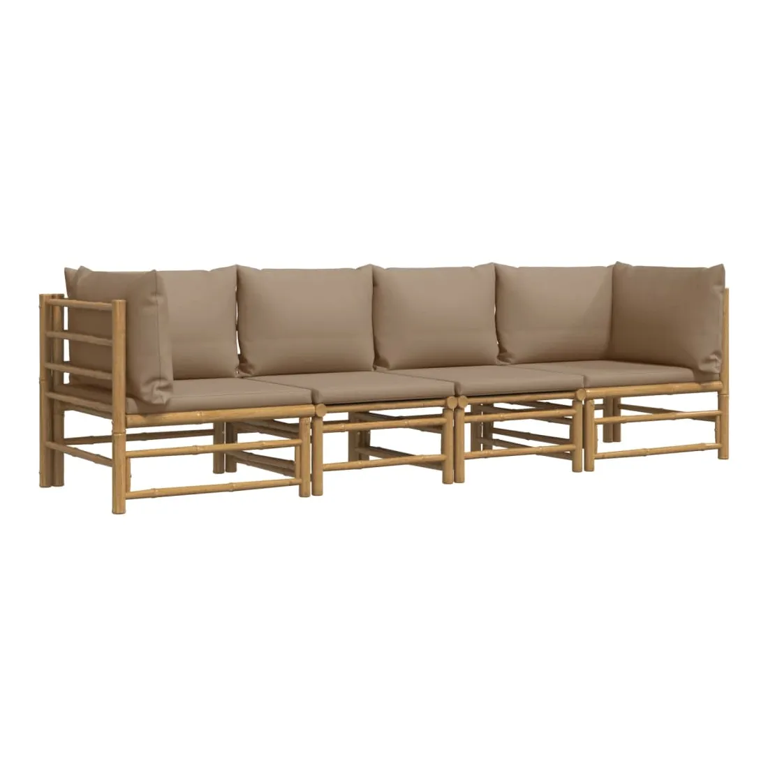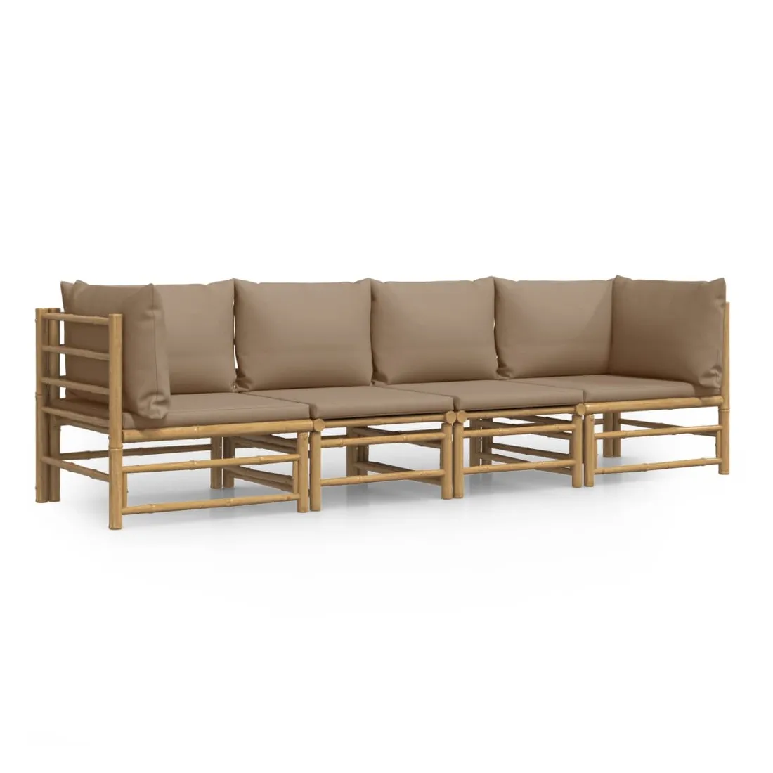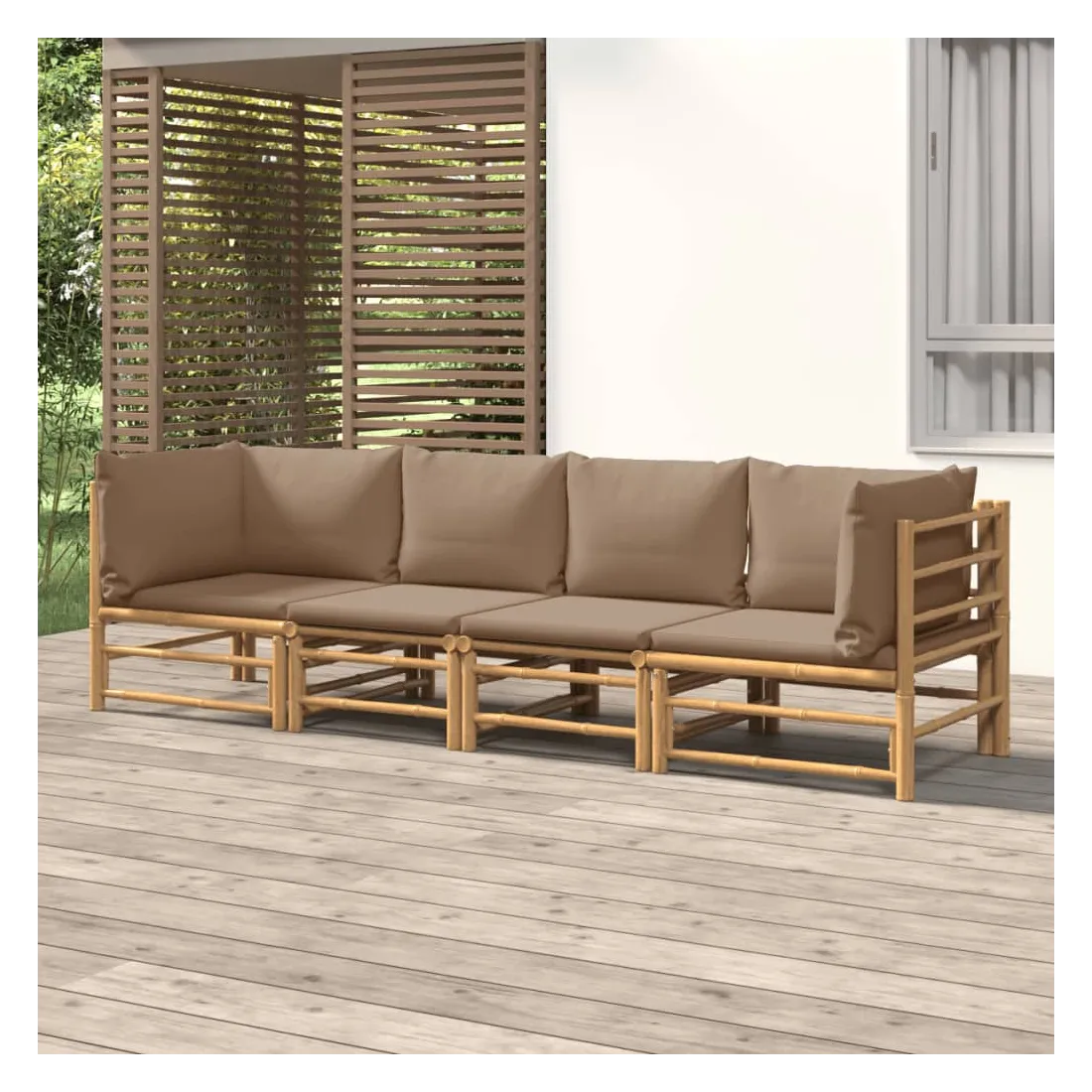 Salon de jardin 4 pcs avec coussins taupe bambou