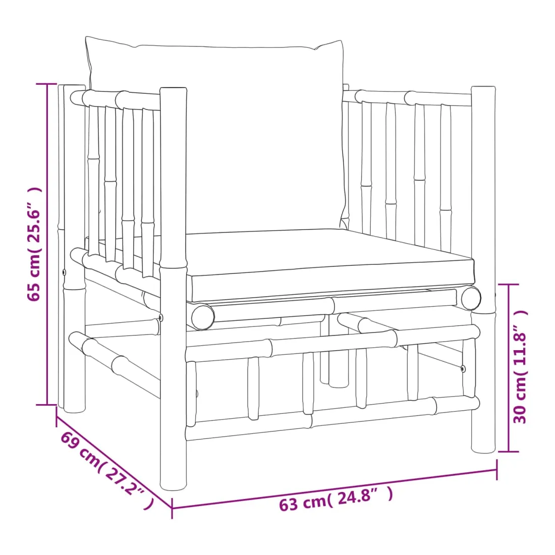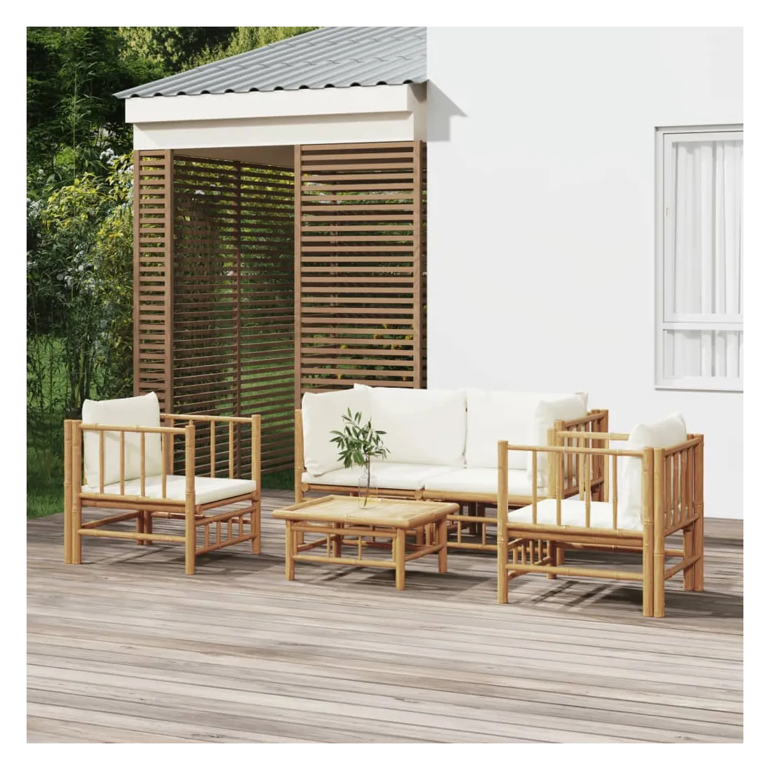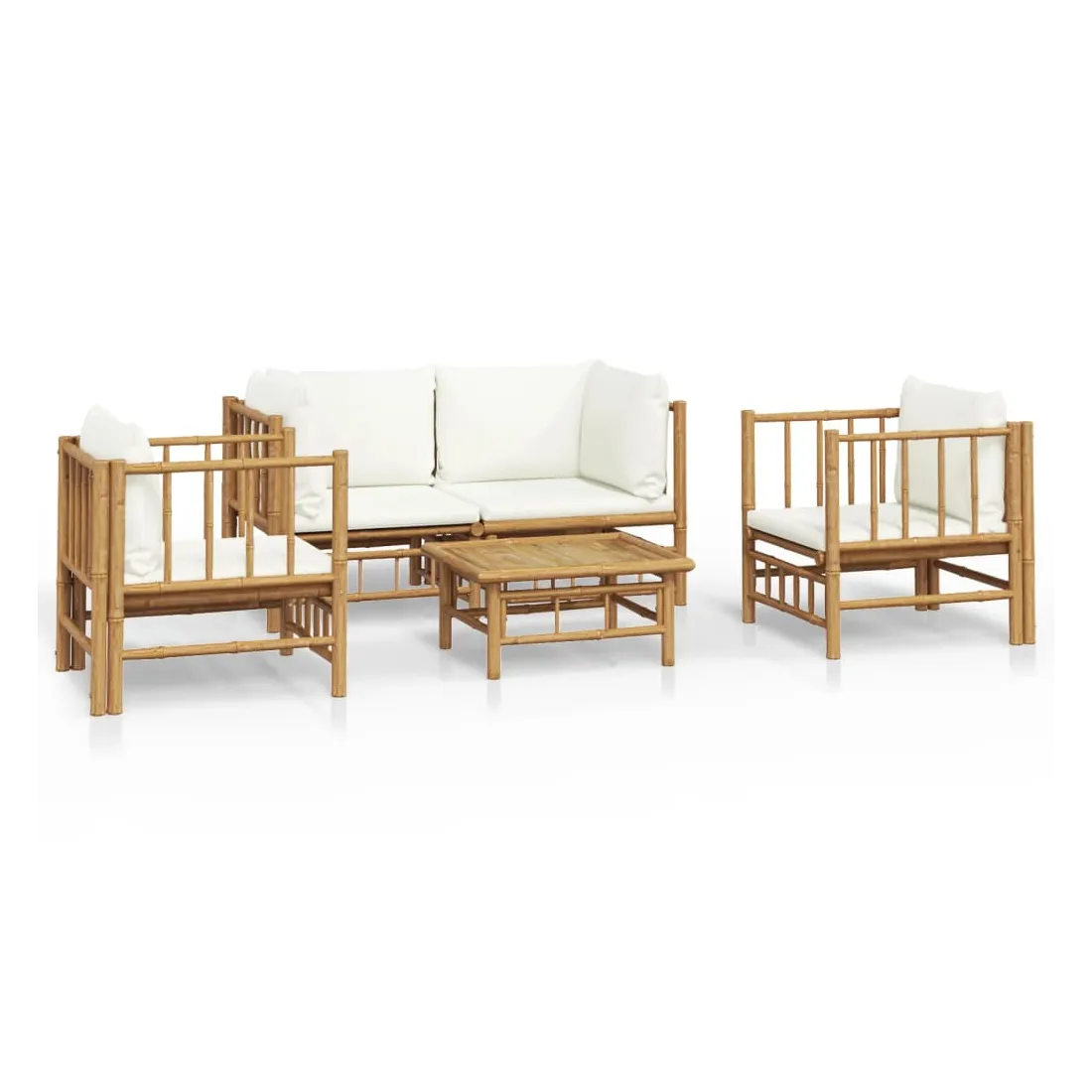 Salon de jardin 5 pcs avec coussins blanc crème bambou