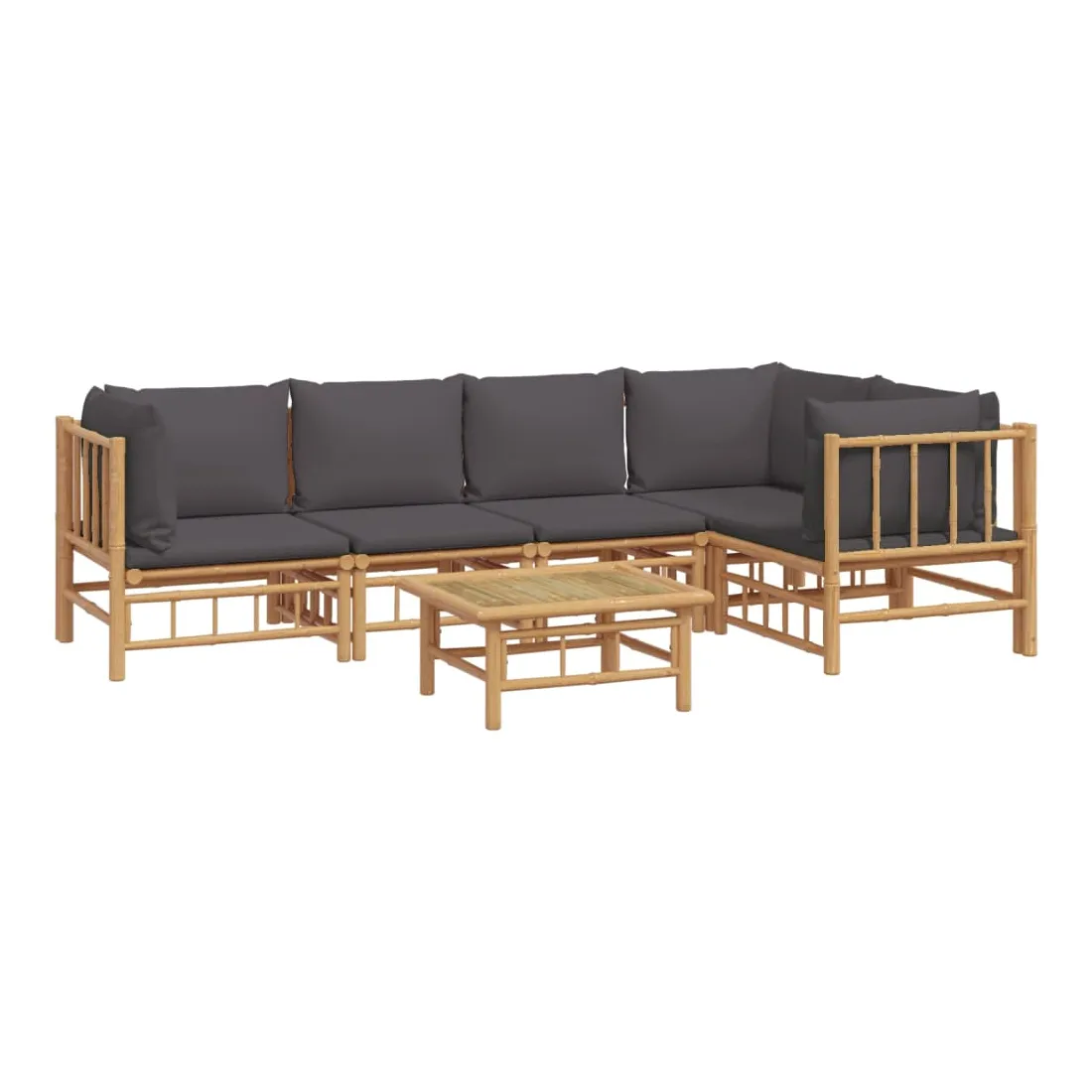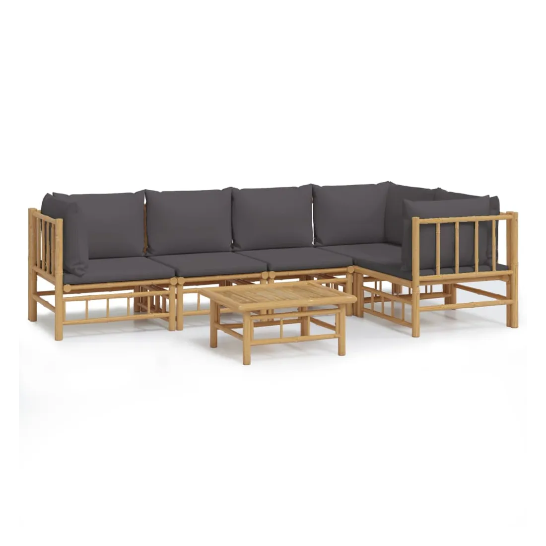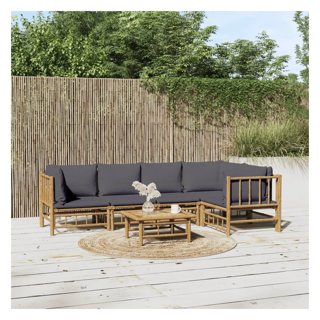 Salon de jardin 6 pcs avec coussins gris foncé bambou
