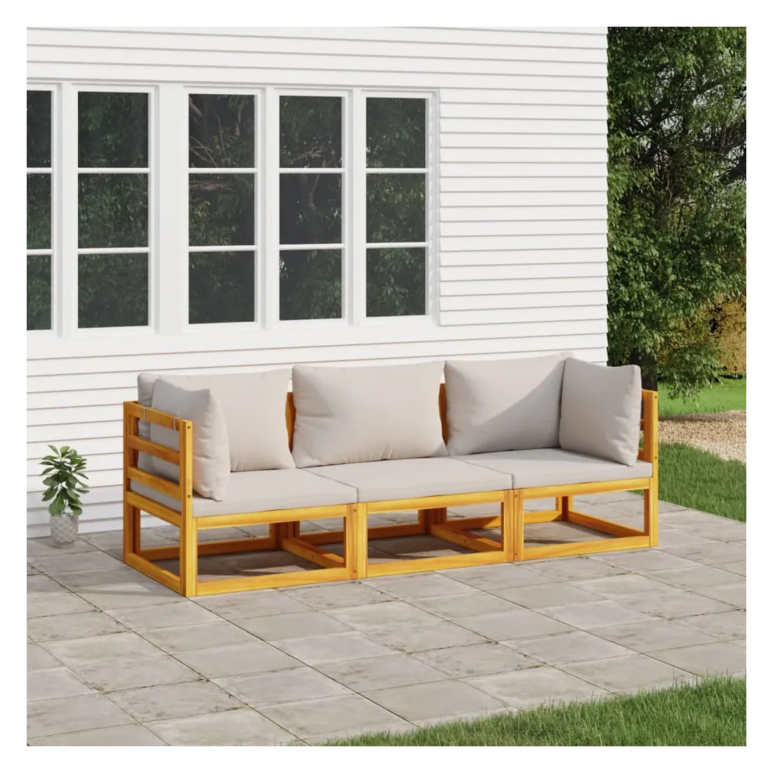 Salon de jardin 3 pcs avec coussins gris clair bois massif