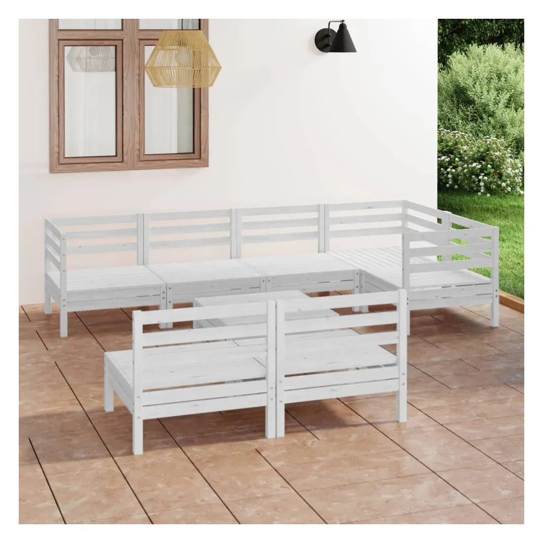 Salon de jardin 8 pcs Bois de pin massif Blanc