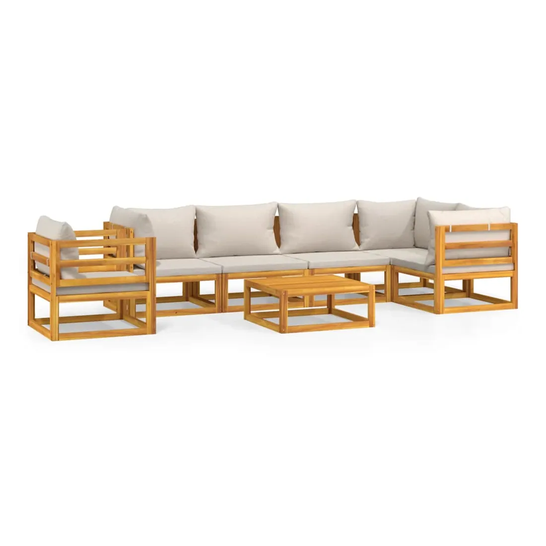 Savourez une tasse de café ou de thé par beau temps dans votre espace extérieur avec cet élégant ensemble de salon de jardin en bois ! Bois d'acacia massif : cet ensemble de meubles de jardin est en bois d'acacia massif. Le bois d'acacia solide est un beau matériau naturel. Le bois d'acacia est un bois dur tropical, qui est dense, robuste et durable.Expérience d'assise confortable : le dossier ajoute un confort d'assise supplémentaire au canapé. De plus, les coussins bien rembourrés offrent du confort pendant votre temps d'assise.Table pratique : la table robuste est parfaite pour placer des repas, des boissons et d'autres objets décoratifs.Design modulaire : le canapé de jardin est flexible et facile à déplacer, vous pouvez donc le combiner avec d'autres segments modulaires de la boutique en ligne pour créer vos propres configurations de salon de jardin ! Bon à savoir :Pour faciliter au maximum le montage, chaque produit est livré avec des instructions. Remarque :Pour que vos meubles d'extérieur restent beaux, nous vous recommandons de les protéger avec une housse imperméable.