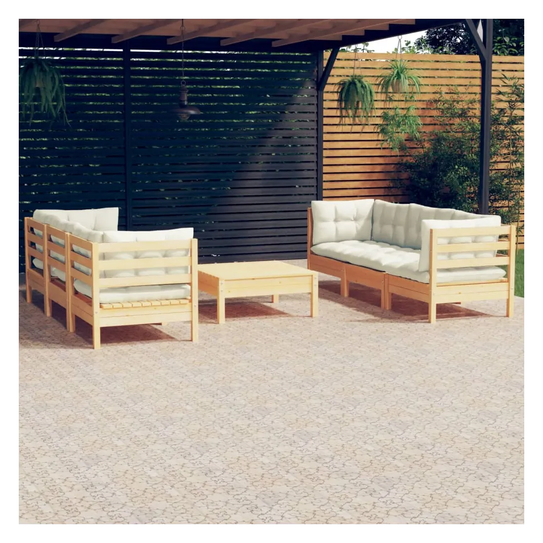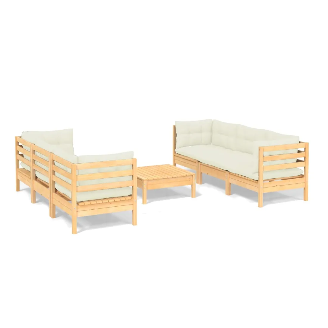 Salon de jardin 7 pcs avec coussins crème bois de pin