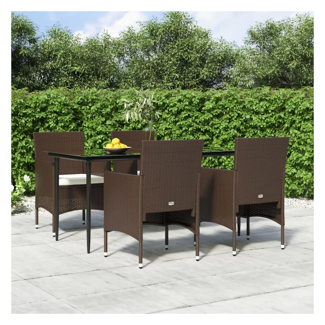 Cet ensemble de salle à manger de jardin, au design élégant et contemporain, est un excellent choix pour manger ou se détendre dans le jardin. Matériau résistant aux intempéries : fabriqué en résine tressée résistante aux intempéries et à l'eau, cet ensemble de salle à manger de jardin est facile à nettoyer, résistant à l'usure et adapté à un usage quotidien.Cadre robuste : les cadres en acier enduit de poudre rendent l'ensemble de salle à manger d'extérieur robuste et stable pour une utilisation quotidienne à l'extérieur.Dessus de table pratique : le dessus lisse de la table de salle à manger est en verre trempé, facile à nettoyer avec un chiffon humide. De plus, le dessus robuste est parfait pour placer des repas, des boissons et d'autres objets décoratifs.Design confortable : conçues avec des dossiers et des accoudoirs incurvés, ces chaises d'extérieur offrent un maximum de confort.Confort supplémentaire : les coussins bien rembourrés offrent un confort ultime pendant votre temps d'assise. Remarque :Afin de prolonger la durée de vie de votre mobilier d'extérieur, nous vous recommandons de le protéger avec une housse imperméable.Chaque produit est livré avec un manuel de montage dans la boîte pour un montage facile.