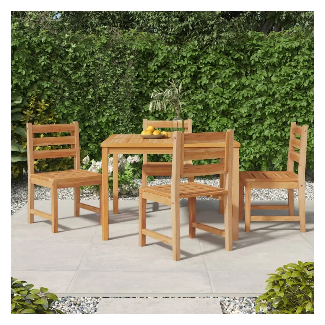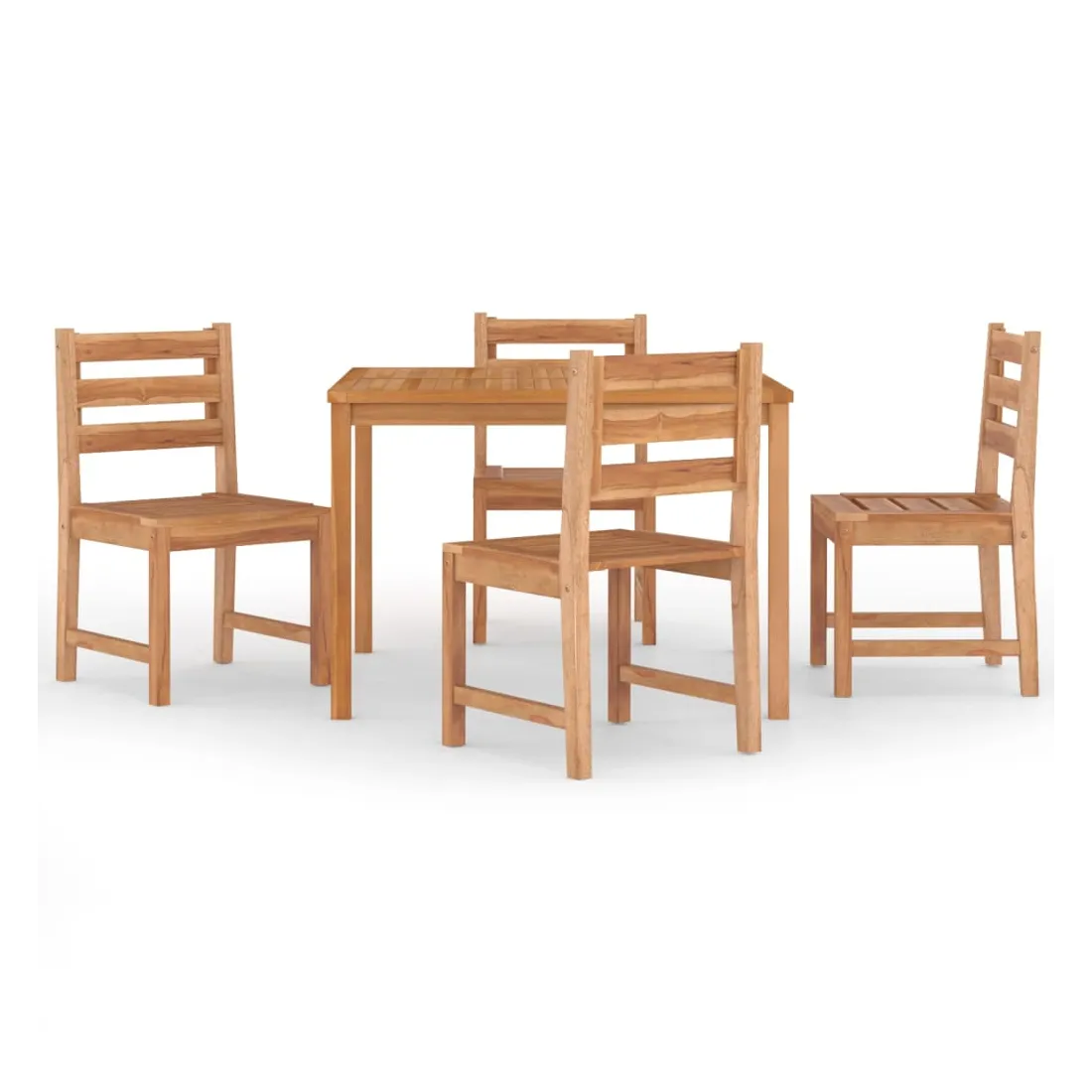 vidaXLCet ensemble de salle à manger de jardin en bois, au design élégant et contemporain, est un excellent choix pour manger ou vous détendre dans le jardin. Bois de teck massif : le bois de teck massif est un matériau naturel magnifique. Il a été chevronné, séché au four, puis sablé finement pour lui donner une apparence très lisse. Le bois de teck est connu pour sa résistance exceptionnelle et sa résistance aux intempéries.Dessus de table robuste : cette table de repas vous offre un dessus de table robuste. Vous pouvez y placer vos collations, tes boissons et toutes vos décorations préférées.Caractéristique résistante à l'eau : grâce à sa caractéristique de résistance à l'eau et à son look classique, vous pouvez placer l'ensemble de meubles de jardin n'importe où autour de votre maison, que ce soit à l'intérieur ou à l'extérieur !Expérience d'assise confortable : chaque chaise de dîner est dotée d'un dossier, ce qui rend l'assise très confortable. Remarque :Chaque produit est livré avec un manuel de montage dans la boîte pour un montage facile.Afin de prolonger la durée de vie de votre mobilier d'extérieur, nous vous recommandons de le protéger avec une housse imperméable.