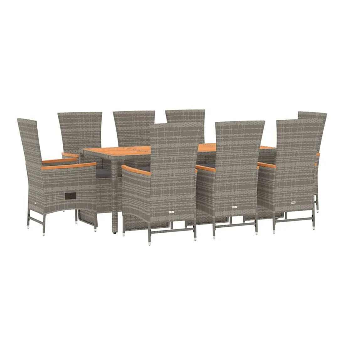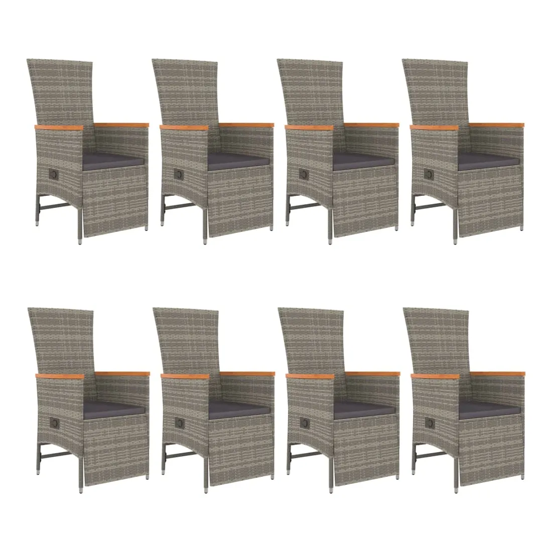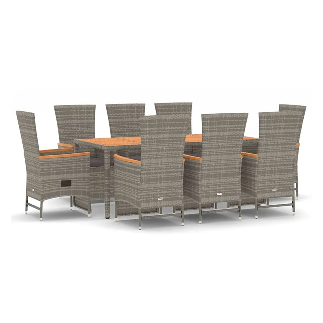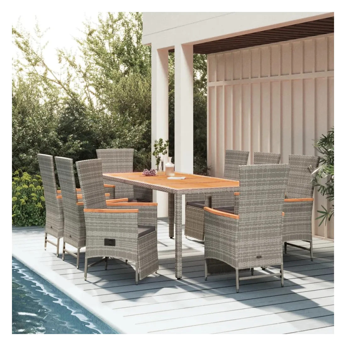 Ensemble à manger de jardin 9 pcs coussins gris résine tressée