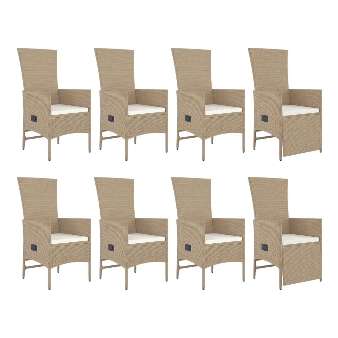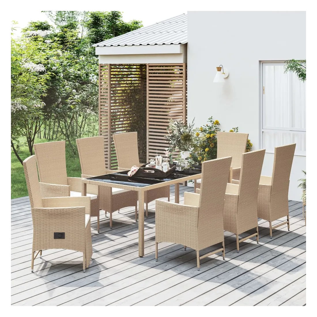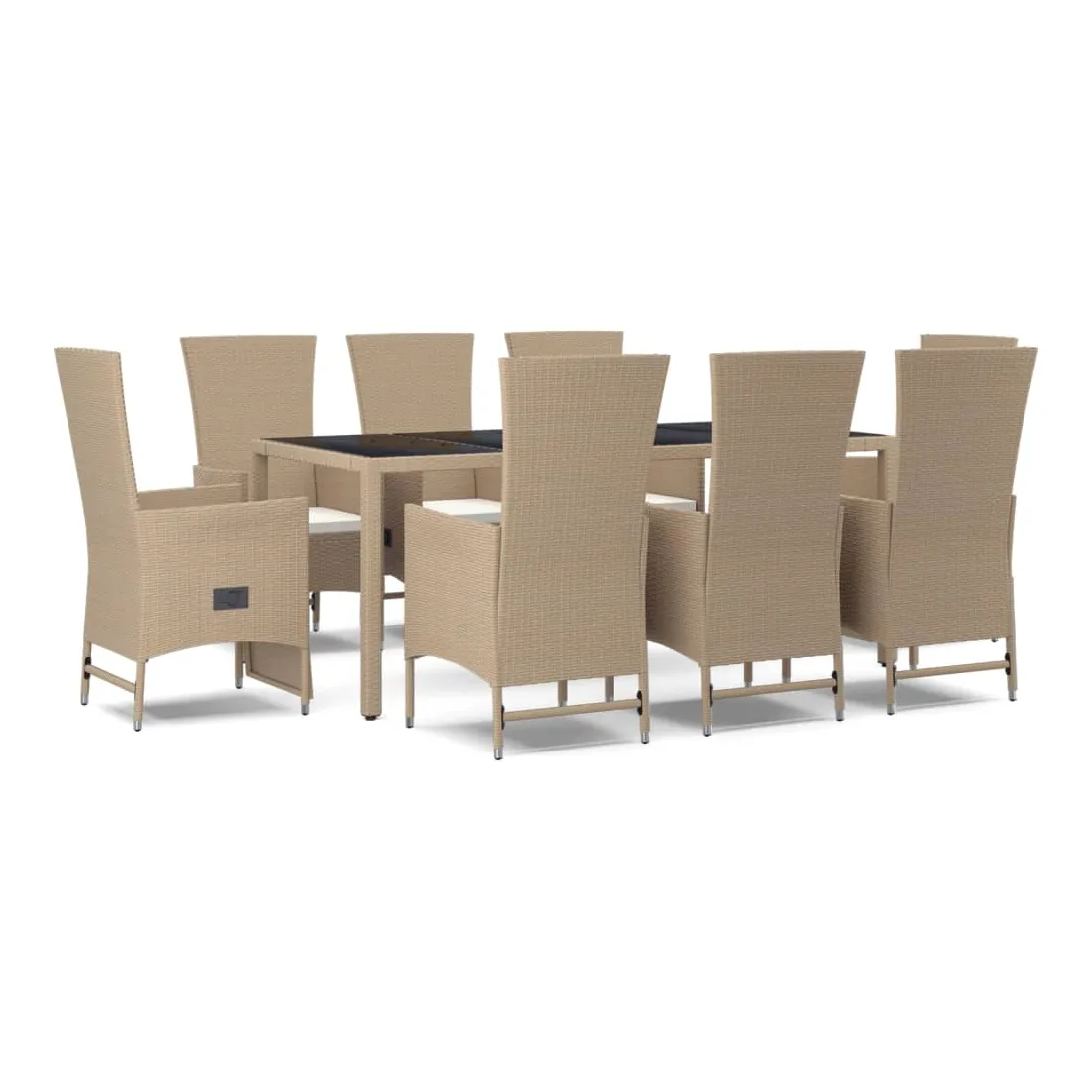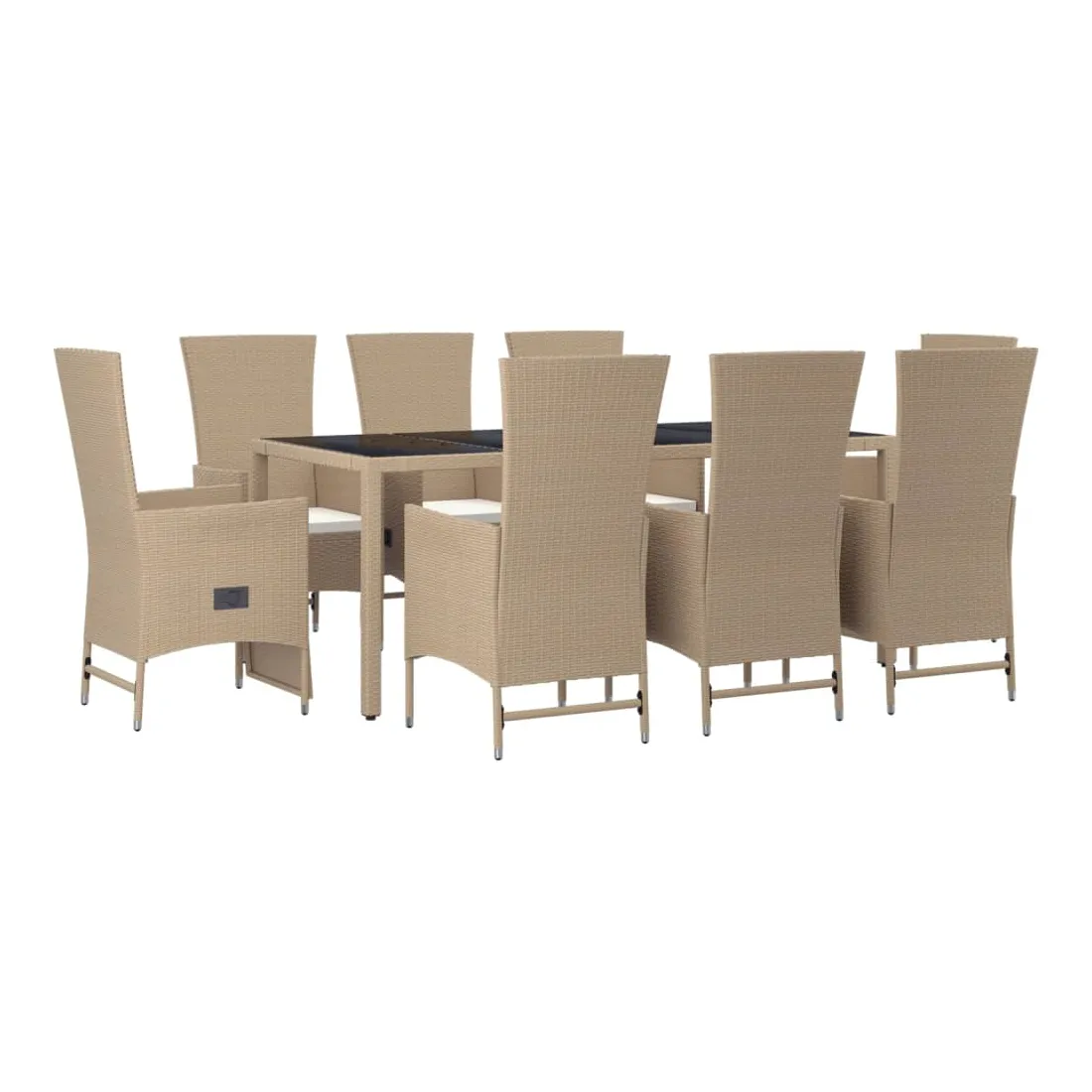 Ensemble à manger de jardin et coussins 9 pcs beige Poly rotin