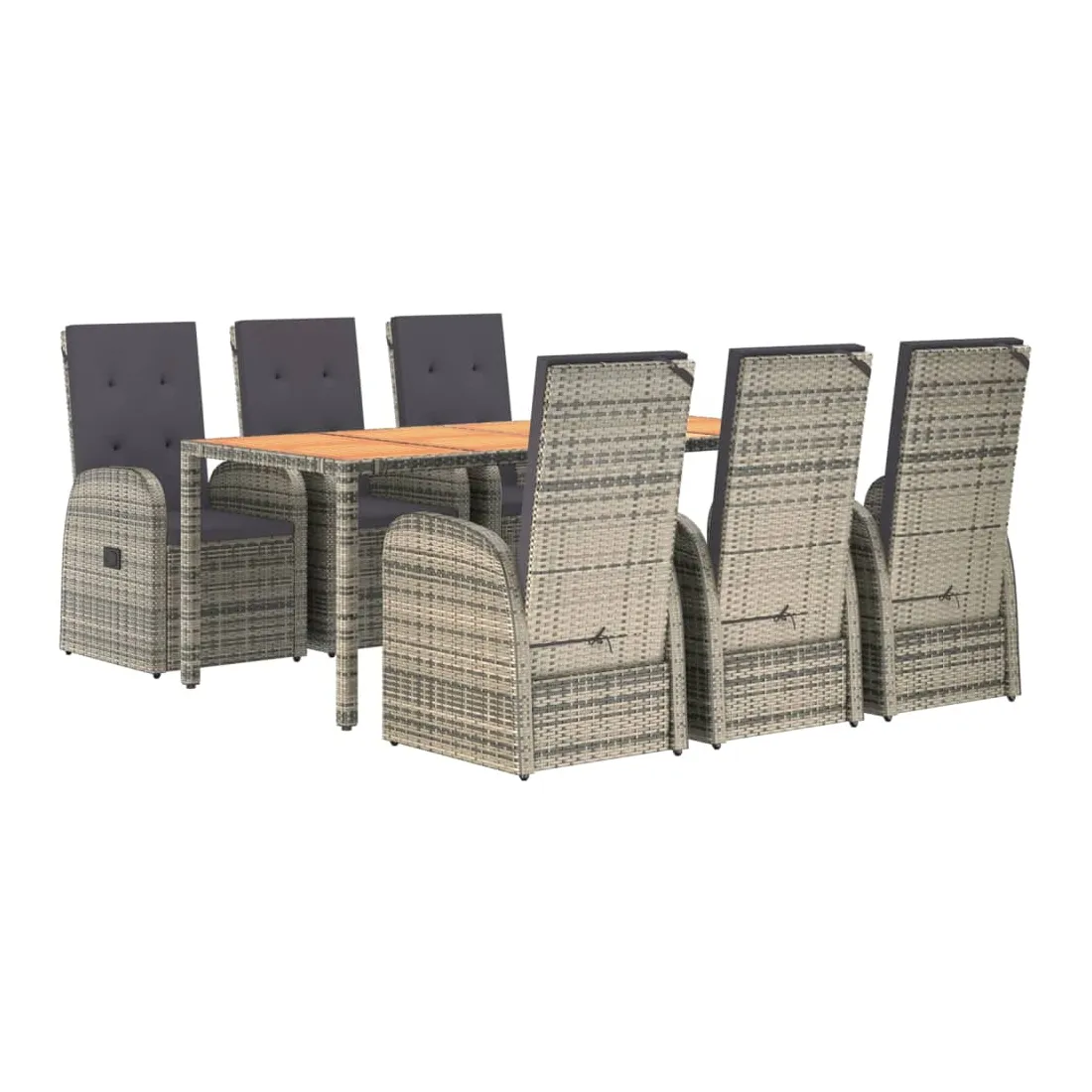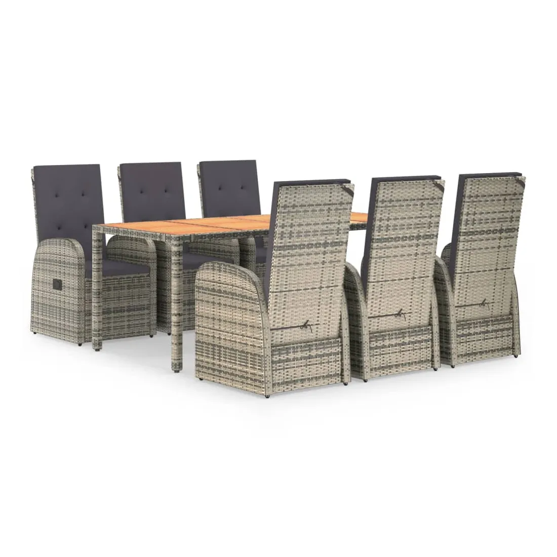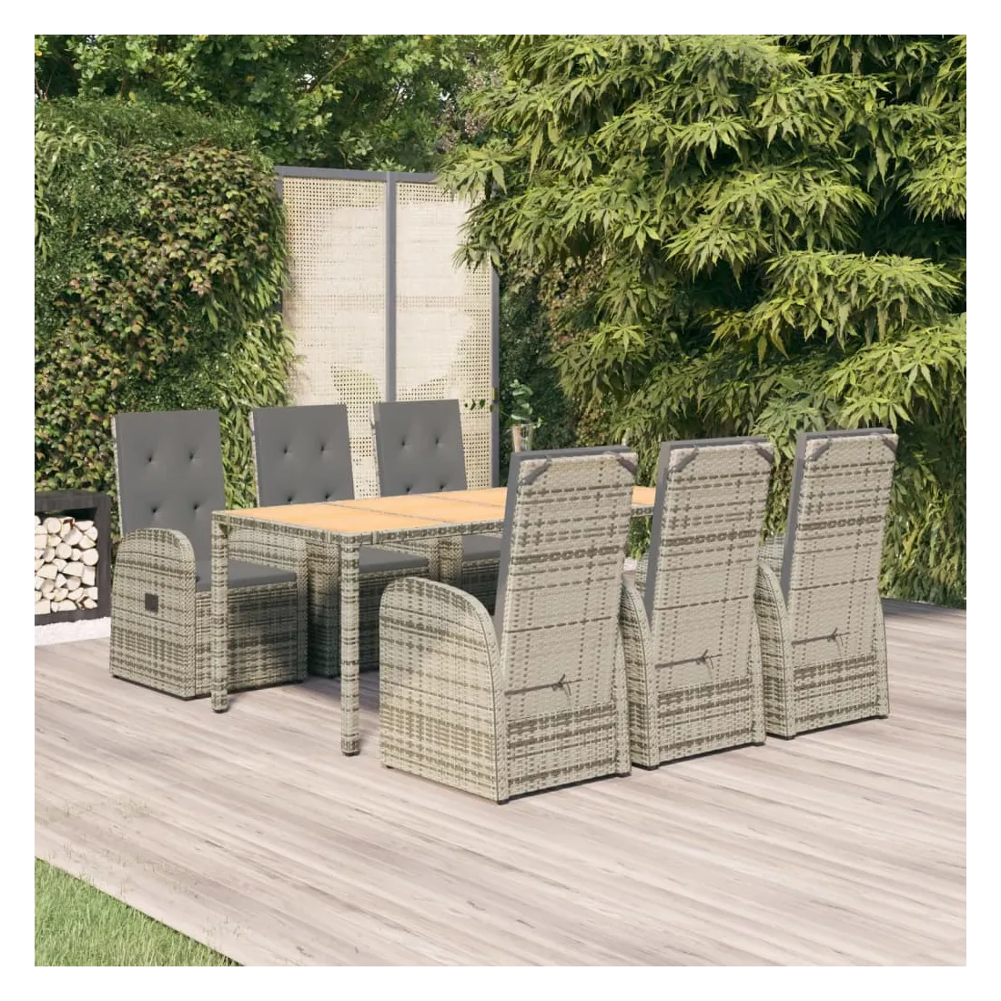 Cet ensemble de salle à manger de jardin tendance, au design élégant et contemporain, est un excellent choix pour manger ou vous détendre dans votre jardin. Matériau résistant aux intempéries : la résine tressée, également connue sous le nom de rotin poly, résiste aux intempéries et est facile à nettoyer. Elle reste belle à l'extérieur pendant une longue période. Elle offre une excellente qualité, commodité et un aspect esthétique.Cadre robuste : les cadres en acier enduit de poudre rendent l'ensemble de salle à manger d'extérieur robuste et stable pour une utilisation quotidienne à l'extérieur.Dessus de table pratique : le dessus de table robuste est parfait pour placer des repas, des boissons et d'autres objets décoratifs.Conception modulaire : l'ensemble de salle à manger de jardin est flexible et facile à déplacer, vous pouvez donc le combiner avec d'autres segments modulaires dans la boutique en ligne pour créer vos propres configurations d'ensemble de salle à manger de jardin !Fonction d'inclinaison : les chaises de jardin sont spécialement conçues avec une fonction d'inclinaison afin que vous puissiez régler le dossier selon votre confort.Expérience d'assise confortable : le dossier ajoute un confort d'assise supplémentaire à la chaise de jardin. De plus, les coussins bien rembourrés vous permettent de vous asseoir confortablement. Bon à savoir :Pour faciliter au maximum le montage, chaque produit est livré avec des instructions. Remarque :Pour que vos meubles d'extérieur restent beaux, nous vous recommandons de les protéger avec une housse imperméable.