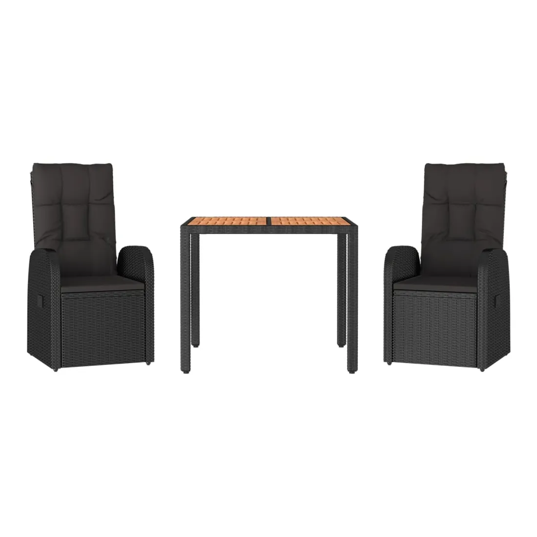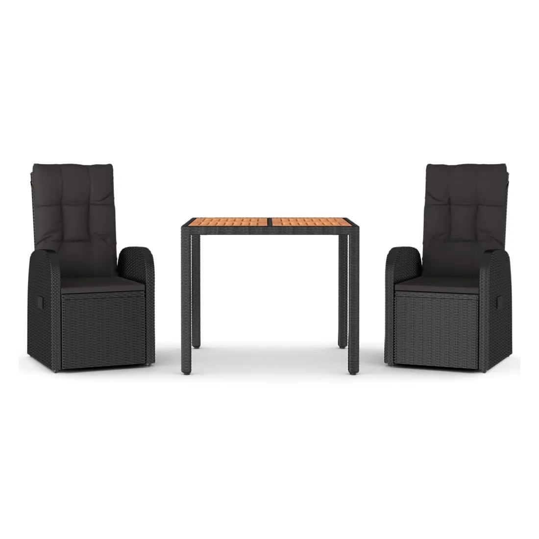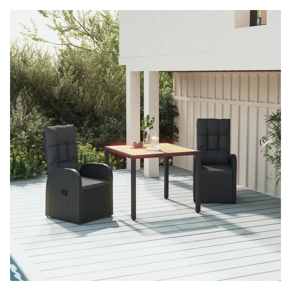 Cet ensemble de salle à manger de jardin tendance, au design élégant et contemporain, est un excellent choix pour manger ou vous détendre dans votre jardin. Matériau résistant aux intempéries : la résine tressée, également connue sous le nom de rotin poly, résiste aux intempéries et est facile à nettoyer. Elle reste belle à l'extérieur pendant une longue période. Elle offre une excellente qualité, commodité et un aspect esthétique.Cadre robuste : les cadres en acier enduit de poudre rendent l'ensemble de salle à manger d'extérieur robuste et stable pour une utilisation quotidienne à l'extérieur.Dessus de table pratique : le dessus de table robuste est parfait pour placer des repas, des boissons et d'autres objets décoratifs.Conception modulaire : l'ensemble de salle à manger de jardin est flexible et facile à déplacer, vous pouvez donc le combiner avec d'autres segments modulaires dans la boutique en ligne pour créer vos propres configurations d'ensemble de salle à manger de jardin !Fonction d'inclinaison : les chaises de jardin sont spécialement conçues avec une fonction d'inclinaison afin que vous puissiez régler le dossier selon votre confort.Expérience d'assise confortable : le dossier ajoute un confort d'assise supplémentaire à la chaise de jardin. De plus, les coussins bien rembourrés vous permettent de vous asseoir confortablement. Bon à savoir :Pour faciliter au maximum le montage, chaque produit est livré avec des instructions. Remarque :Pour que vos meubles d'extérieur restent beaux, nous vous recommandons de les protéger avec une housse imperméable.