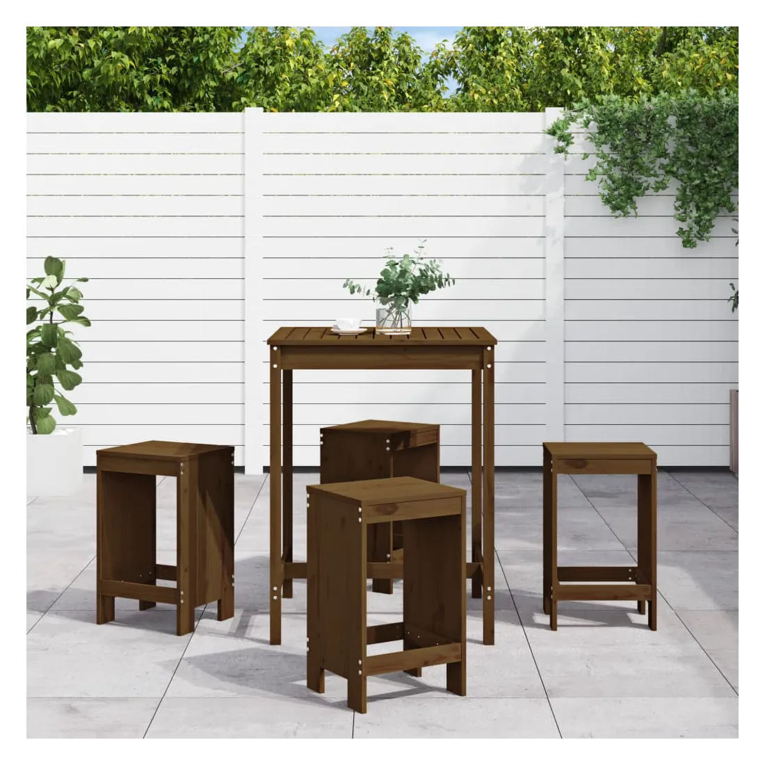 Prenez une gorgée de votre boisson préférée ou profitez d'un bon repas avec votre famille et vos amis autour de cet ensemble de bar de jardin en bois ! Bois de pin massif : cet ensemble de bar est fabriqué en bois de pin massif. le bois de pin massif est un matériau naturel magnifique. Le bois de pin a un grain droit et les nœuds donnent au matériau son aspect caractéristique et rustique.Dessus robuste : la table de bar de l'ensemble de pub est dotée d'un dessus robuste, parfait pour placer vos boissons, vos aliments et autres objets décoratifs.Design pratique : ces tabourets de bar en bois n'ont pas de dossier, vous pouvez donc vous asseoir confortablement de chaque côté des tabourets et les ranger sous le comptoir lorsqu'ils ne sont pas utilisés.Nombreuses applications : avec son design minimaliste, l'ensemble de bar de terrasse peut être intégré dans n'importe quel coin du jardin, terrasse, balcon, jardin, etc. Bon à savoir :Pour que vos meubles d'extérieur restent beaux, nous vous recommandons de les protéger avec une housse imperméable.