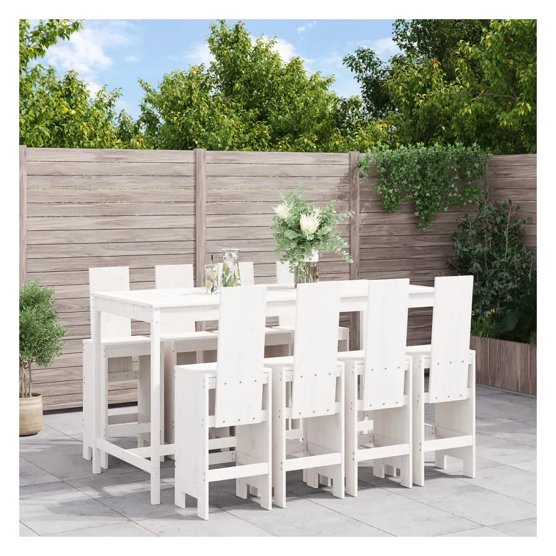 Prenez une gorgée de votre boisson préférée ou profitez d'un bon repas avec votre famille et vos amis autour de cet ensemble de bar de jardin en bois ! Bois de pin massif : cet ensemble de bar est fabriqué en bois de pin massif. le bois de pin massif est un matériau naturel magnifique. Le bois de pin a un grain droit et les nœuds donnent au matériau son aspect caractéristique et rustique.Dessus robuste : la table de bar de l'ensemble de pub est dotée d'un dessus robuste, parfait pour placer vos boissons, vos aliments et autres objets décoratifs.Assise confortable : le dossier et le repose-pieds du tabouret de bar en bois offrent une assise confortable pour détendre votre dos et vos jambes.Nombreuses applications : avec son design minimaliste, l'ensemble de bar de terrasse peut être intégré dans n'importe quel coin du jardin, terrasse, balcon, jardin, etc. Bon à savoir :Pour que vos meubles d'extérieur restent beaux, nous vous recommandons de les protéger avec une housse imperméable.
