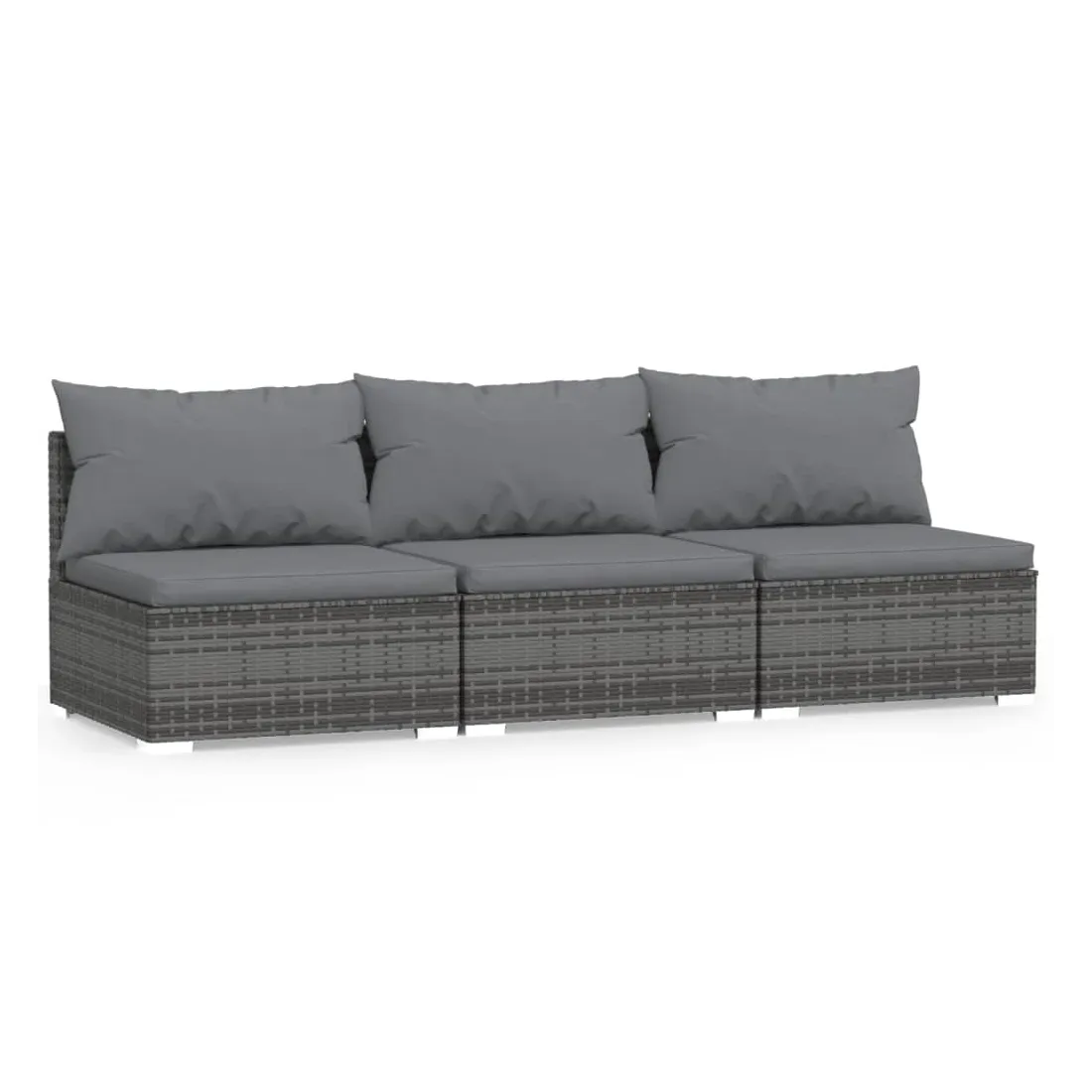 vidaXLCe canapé 3 places élégant est un excellent choix pour profiter de votre temps libre à l'intérieur ou à l'extérieur, il allie parfaitement style et fonctionnalité. Le siège de patio est doté d'un cadre en acier robuste enduit de poudre et de pieds en plastique chromé, très durables. Le canapé 3 places est conçu avec de la résine tressée imperméable, ce qui le rend résistant à l'usure et adapté à une utilisation quotidienne en plein air. Grâce à sa construction légère, ce canapé de jardin est facile à déplacer. Les coussins bien rembourrés et amovibles sont très confortables. De plus, la conception modulaire permet également de placer l'ensemble dans n'importe quel arrangement ou de le combiner avec d'autres segments modulaires pour répondre à vos besoins ! Remarque : afin de prolonger la durée de vie des meubles d'extérieur, nous vous recommandons de les protéger avec une housse imperméable.