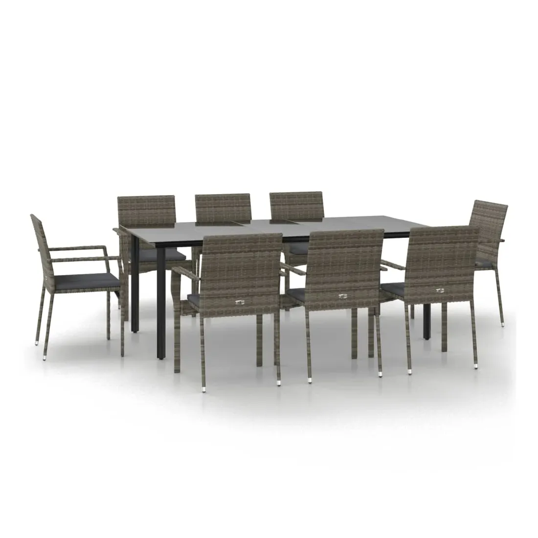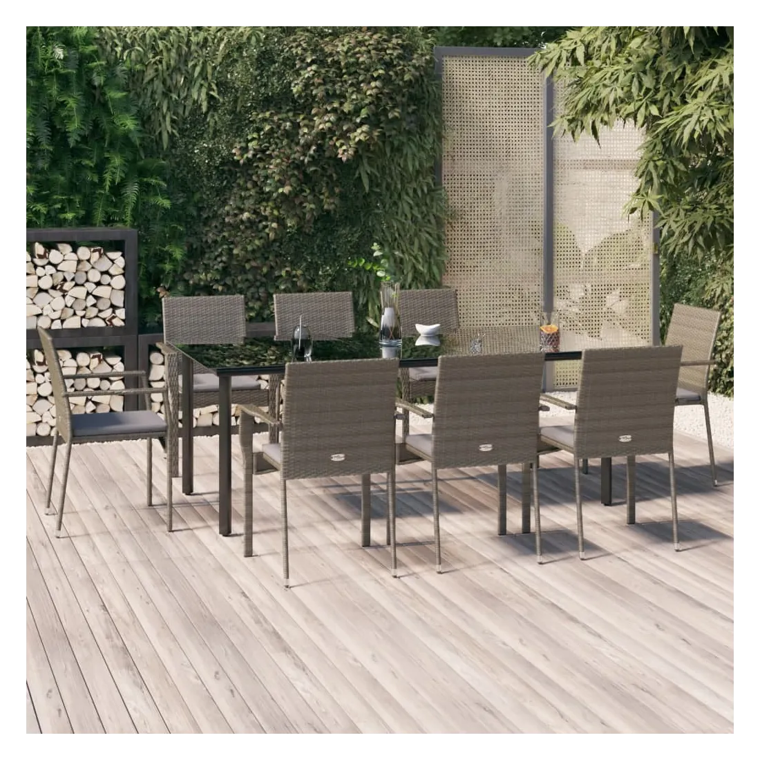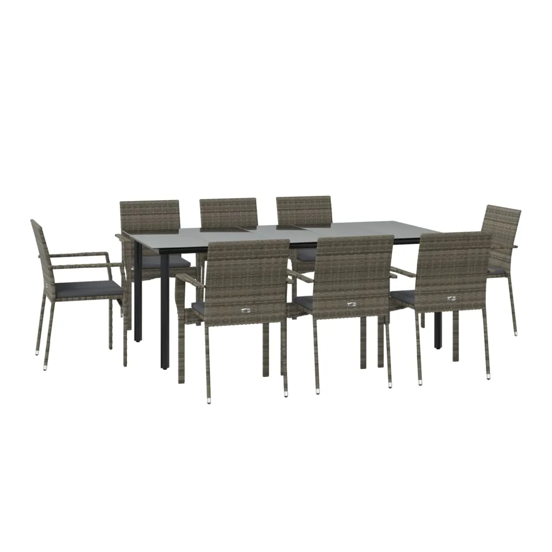 Cet ensemble de salle à manger de jardin tendance, au design élégant et contemporain, est un excellent choix pour manger ou vous détendre dans votre jardin. Matériau résistant aux intempéries : la résine tressée, également connue sous le nom de rotin poly, résiste aux intempéries et est facile à nettoyer. Elle reste belle à l'extérieur pendant une longue période. Elle offre une excellente qualité, commodité et un aspect esthétique.Cadre robuste : les cadres en acier enduit de poudre rendent l'ensemble de salle à manger d'extérieur robuste et stable pour une utilisation quotidienne à l'extérieur.Dessus de table pratique : le dessus lisse de la table de jardin est en verre trempé, facile à nettoyer avec un chiffon humide. De plus, le dessus robuste est parfait pour placer des repas, des boissons et d'autres objets décoratifs.Conception modulaire : l'ensemble de salle à manger de jardin est flexible et facile à déplacer, vous pouvez donc le combiner avec d'autres segments modulaires dans la boutique en ligne pour créer vos propres configurations d'ensemble de salle à manger de jardin !Expérience d'assise confortable : le dossier ajoute un confort d'assise supplémentaire à la chaise de jardin. De plus, les coussins bien rembourrés vous permettent de vous asseoir confortablement. Bon à savoir :Pour faciliter au maximum le montage, chaque produit est livré avec des instructions. Remarque :Pour que vos meubles d'extérieur restent beaux, nous vous recommandons de les protéger avec une housse imperméable.