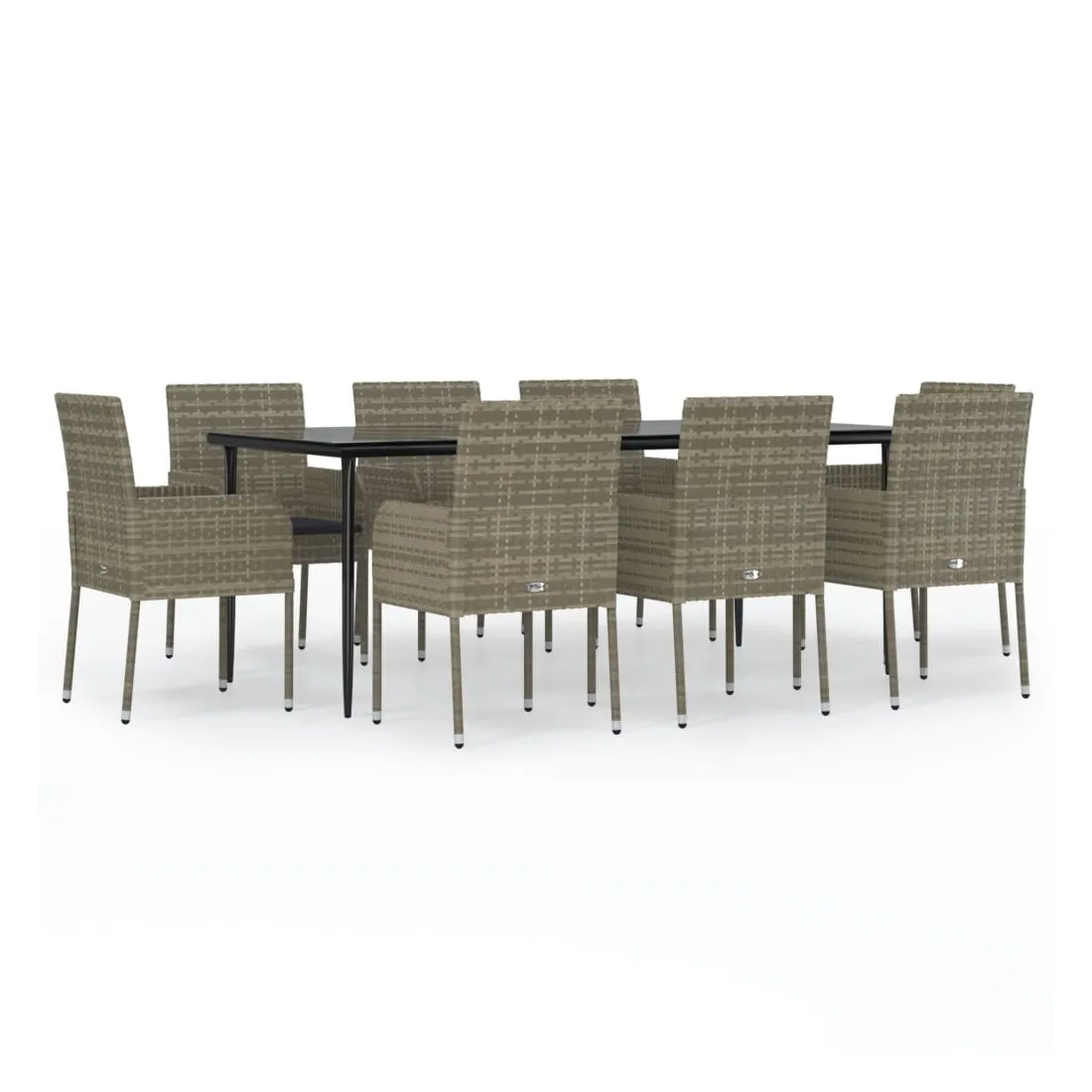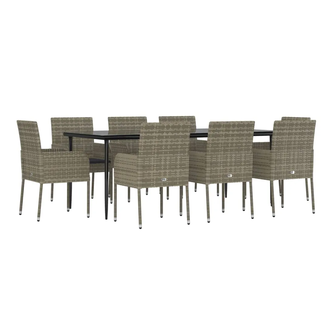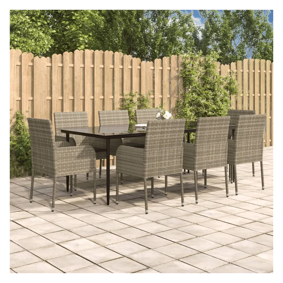Cet ensemble de salle à manger de jardin tendance, au design élégant et contemporain, est un excellent choix pour manger ou vous détendre dans votre jardin. Matériau résistant aux intempéries : la résine tressée, également connue sous le nom de rotin poly, résiste aux intempéries et est facile à nettoyer. Elle reste belle à l'extérieur pendant une longue période. Elle offre une excellente qualité, commodité et un aspect esthétique.Cadre robuste : les cadres en acier enduit de poudre rendent l'ensemble de salle à manger d'extérieur robuste et stable pour une utilisation quotidienne à l'extérieur.Dessus de table pratique : le dessus lisse de la table de jardin est en verre trempé, facile à nettoyer avec un chiffon humide. De plus, le dessus robuste est parfait pour placer des repas, des boissons et d'autres objets décoratifs.Conception modulaire : l'ensemble de salle à manger de jardin est flexible et facile à déplacer, vous pouvez donc le combiner avec d'autres segments modulaires dans la boutique en ligne pour créer vos propres configurations d'ensemble de salle à manger de jardin !Expérience d'assise confortable : le dossier ajoute un confort d'assise supplémentaire à la chaise de jardin. De plus, les coussins bien rembourrés vous permettent de vous asseoir confortablement. Bon à savoir :Pour faciliter au maximum le montage, chaque produit est livré avec des instructions. Remarque :Pour que vos meubles d'extérieur restent beaux, nous vous recommandons de les protéger avec une housse imperméable.