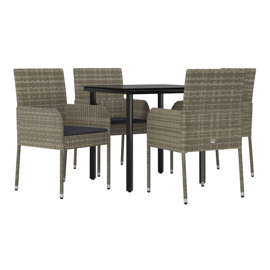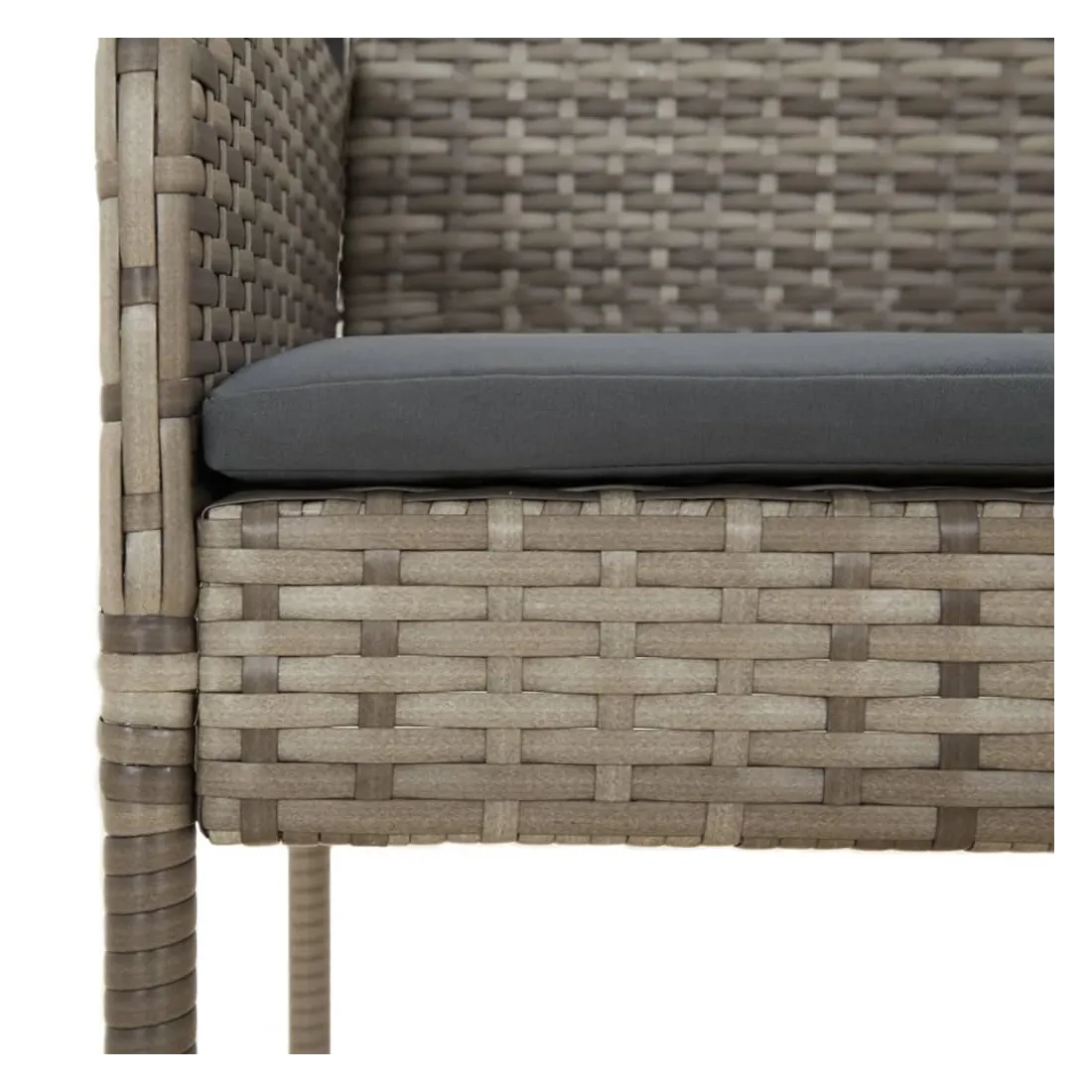 Cet ensemble de salle à manger de jardin tendance, au design élégant et contemporain, est un excellent choix pour manger ou vous détendre dans votre jardin. Matériau résistant aux intempéries : la résine tressée, également connue sous le nom de rotin poly, résiste aux intempéries et est facile à nettoyer. Elle reste belle à l'extérieur pendant une longue période. Elle offre une excellente qualité, commodité et un aspect esthétique.Cadre robuste : les cadres en acier enduit de poudre rendent l'ensemble de salle à manger d'extérieur robuste et stable pour une utilisation quotidienne à l'extérieur.Dessus de table pratique : le dessus lisse de la table de jardin est en verre trempé, facile à nettoyer avec un chiffon humide. De plus, le dessus robuste est parfait pour placer des repas, des boissons et d'autres objets décoratifs.Conception modulaire : l'ensemble de salle à manger de jardin est flexible et facile à déplacer, vous pouvez donc le combiner avec d'autres segments modulaires dans la boutique en ligne pour créer vos propres configurations d'ensemble de salle à manger de jardin !Expérience d'assise confortable : le dossier ajoute un confort d'assise supplémentaire à la chaise de jardin. De plus, les coussins bien rembourrés vous permettent de vous asseoir confortablement. Bon à savoir :Pour faciliter au maximum le montage, chaque produit est livré avec des instructions. Remarque :Pour que vos meubles d'extérieur restent beaux, nous vous recommandons de les protéger avec une housse imperméable.