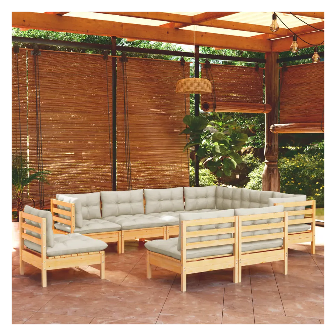 Ce salon de jardin est un excellent choix pour vous détendre et profiter du beau temps, faire une sieste ou discuter avec votre famille ou vos amis. Le salon de patio est fabriqué en bois de pin massif, ce qui le rend robuste et stable. Les coussins ajoutent un confort supplémentaire. Vous pouvez le combiner avec d’autres segments modulaires pour créer vos propres configurations de salon de jardin ! Remarque : afin de prolonger la durée de vie des meubles d'extérieur, nous vous recommandons de les protéger avec une housse imperméable.