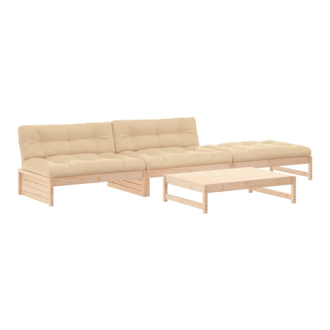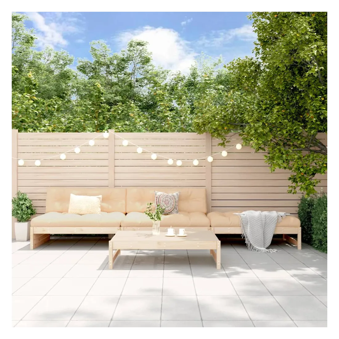 vidaXLCe salon de jardin en bois, qui se démarque par son design à lattes et ses coussins moelleux, sera un excellent supplément à votre jardin, patio ou terrasse pour profiter d'un moment agréable avec votre famille ou vos amis. Bois de pin massif : le bois de pin massif est un matériau naturel magnifique. Le bois de pin a un grain droit et les nœuds donnent au matériau son aspect caractéristique et rustique.Cadre robuste et stable : les cadres en bois rendent l'ensemble de salon robuste et stable pour une utilisation quotidienne à l'extérieur.Expérience d'assise confortable : le dossier ajoute un confort d'assise supplémentaire à l'ensemble de meubles de jardin. De plus, le coussin bien rembourré vous permet de vous asseoir confortablement.Design modulaire : le canapé est flexible et facile à déplacer. Vous pouvez le combiner avec d'autres segments modulaires de la boutique en ligne pour créer vos propres configurations de salon de jardin ! Bon à savoir :Pour que vos meubles d'extérieur restent beaux, nous vous recommandons de les protéger avec une housse imperméable.