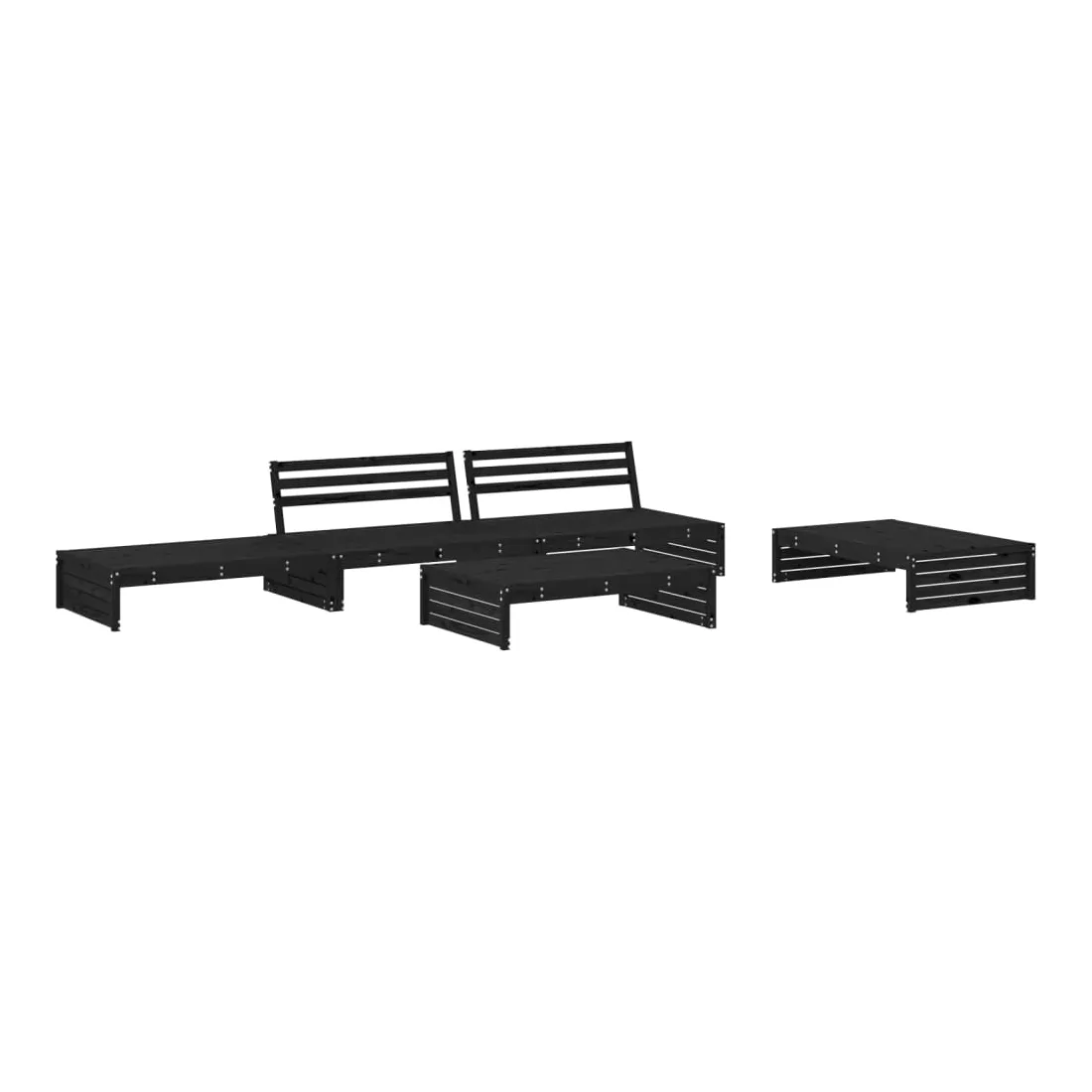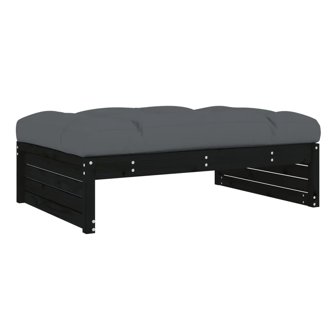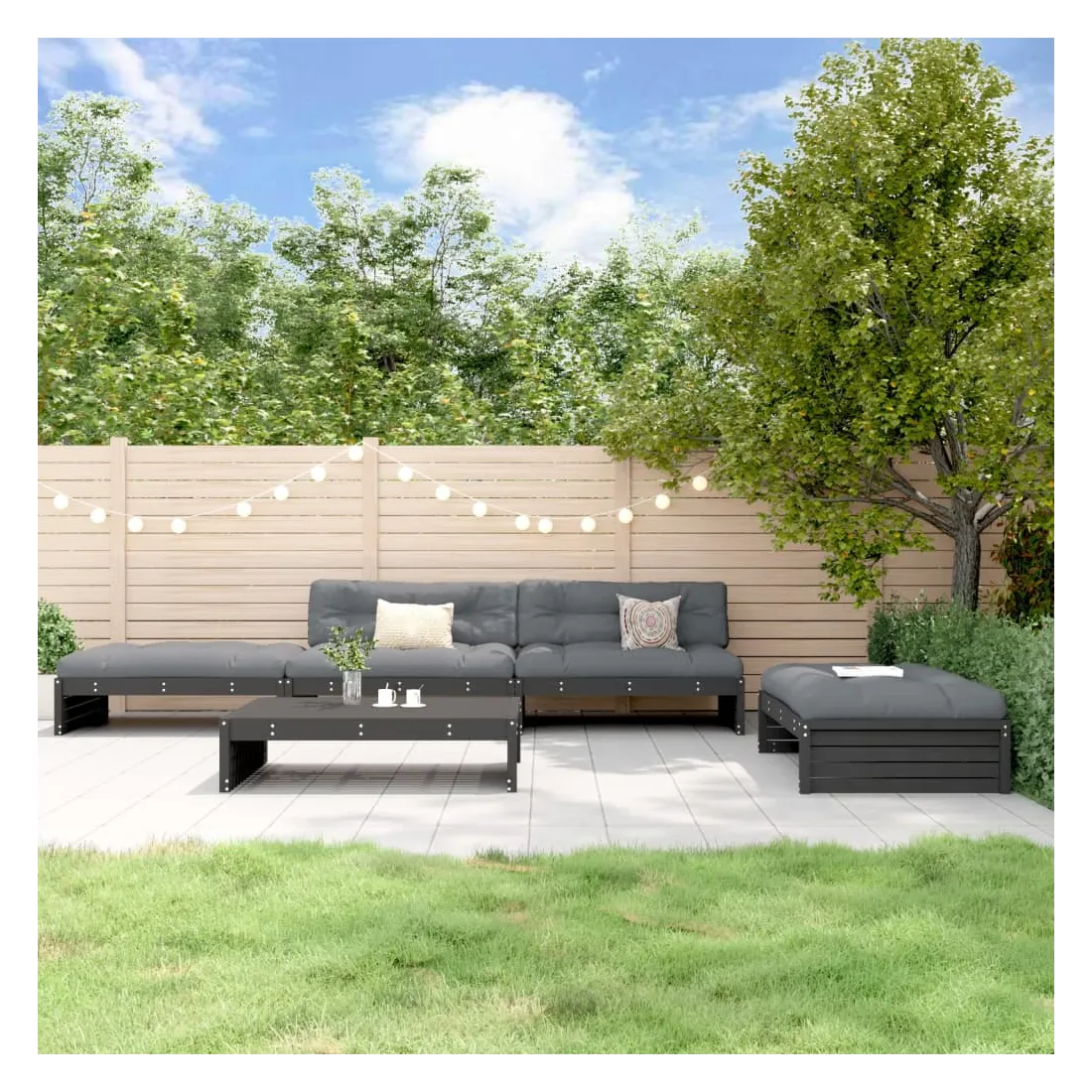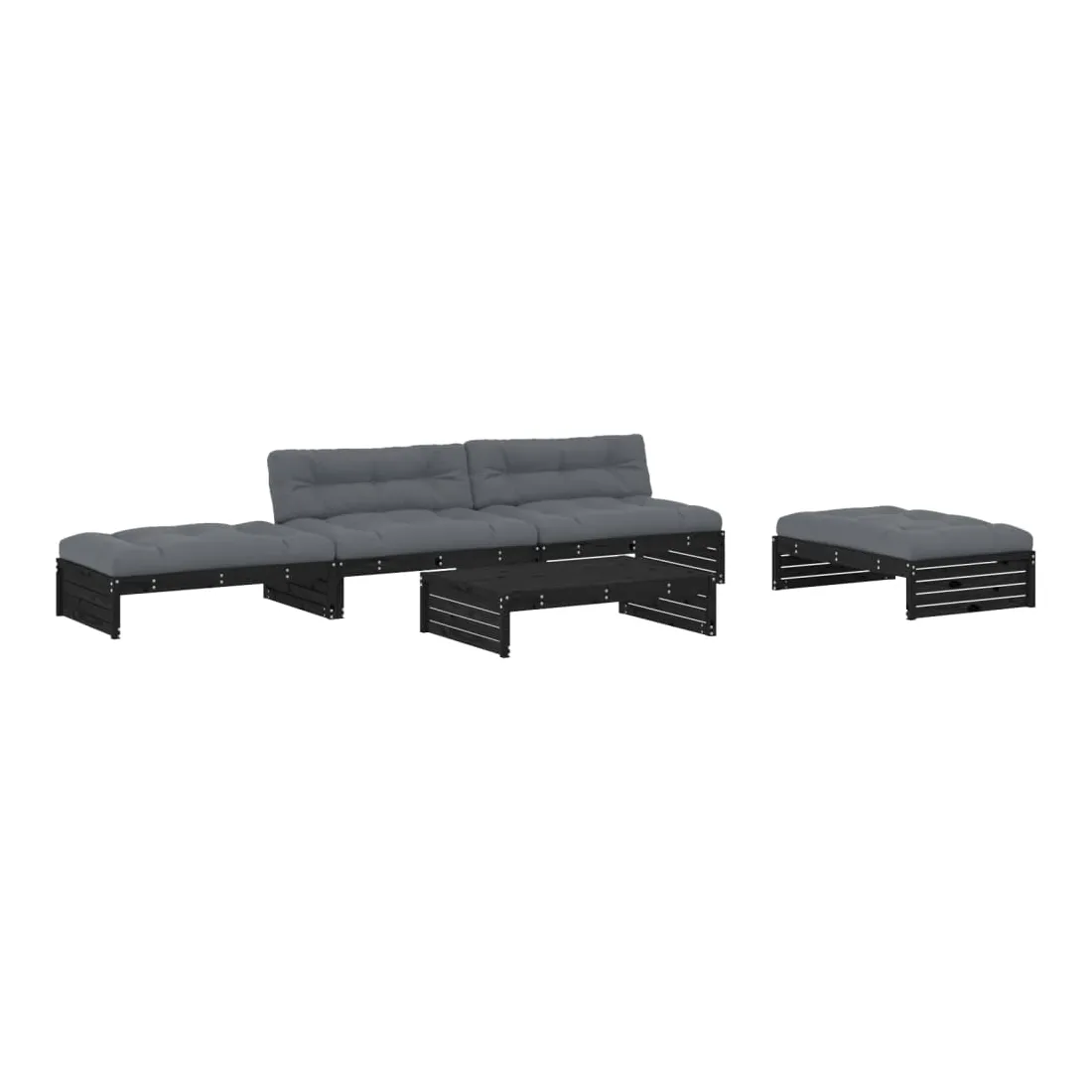 Salon de jardin 5 pcs avec coussins noir bois massif