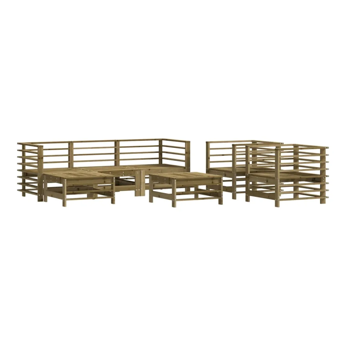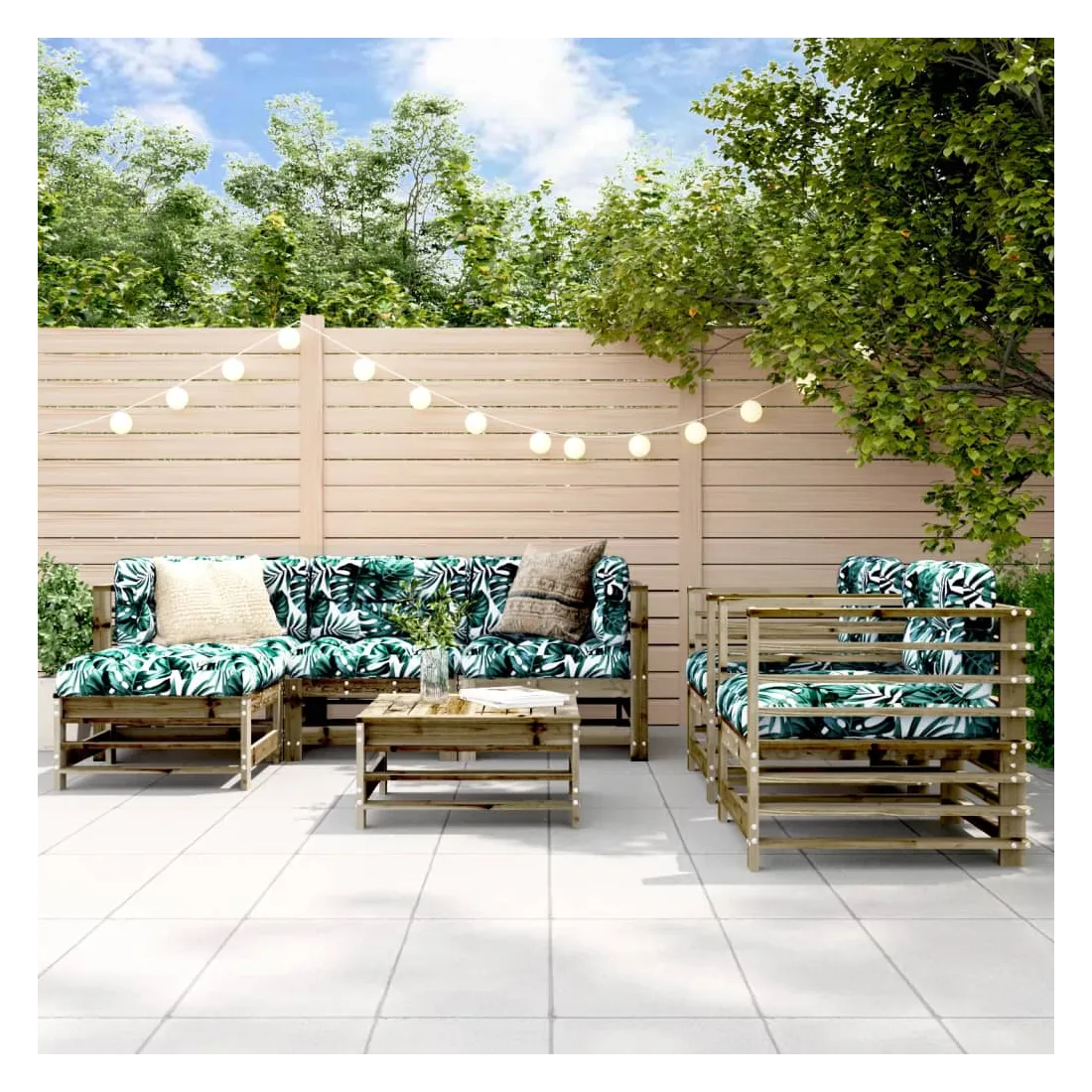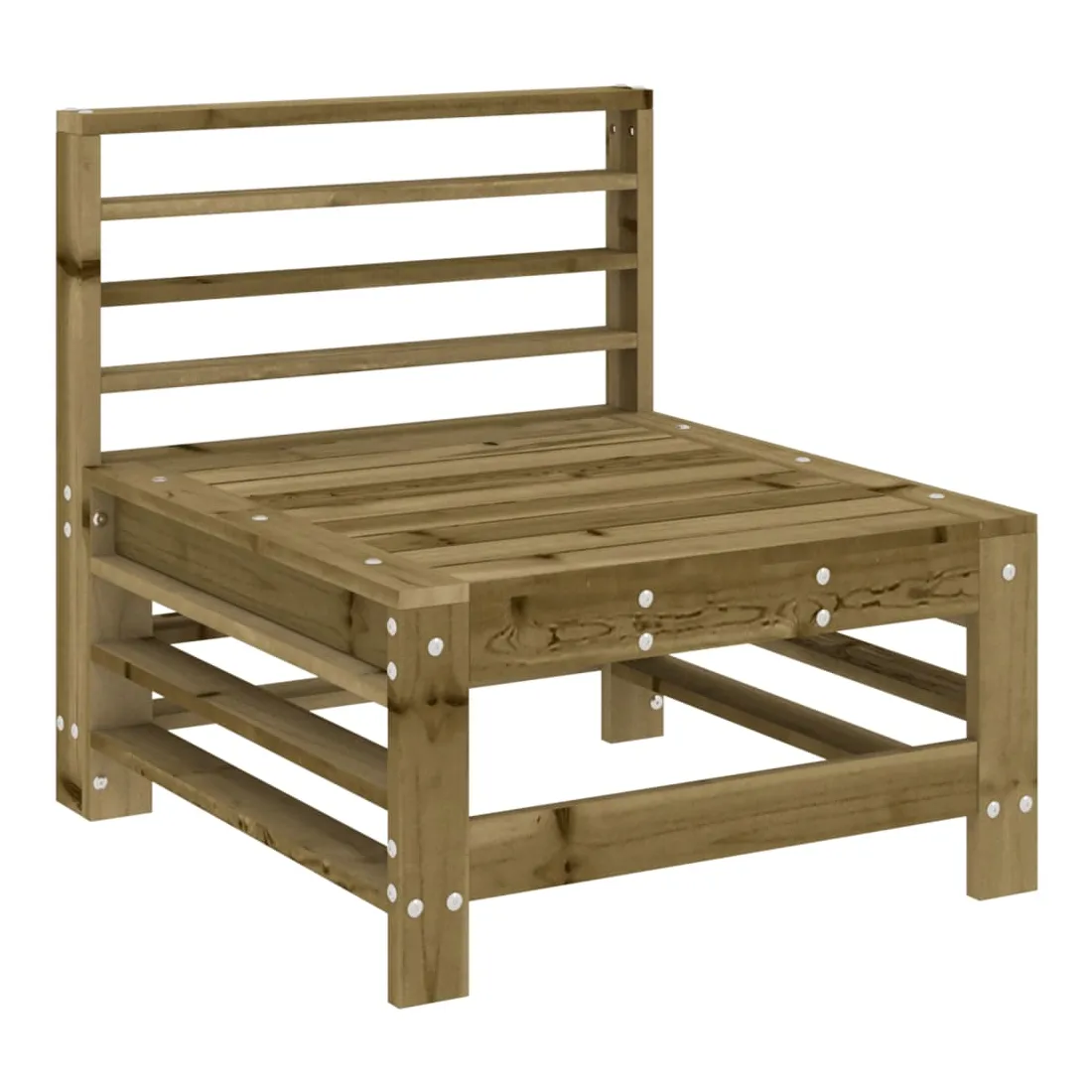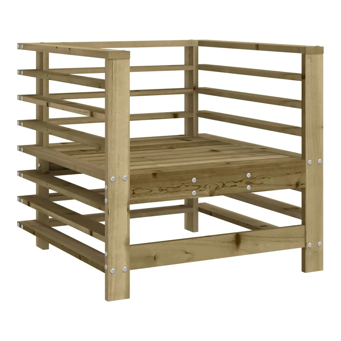 Ce salon de jardin en bois, qui se démarque par son design à lattes, sera un excellent supplément à votre jardin, patio ou terrasse pour profiter d'un moment agréable avec votre famille ou vos amis. Bois imprégné : le bois de pin massif est un matériau naturel magnifique. Le bois de pin a un grain droit et les nœuds lui confèrent un aspect rustique caractéristique. L'imprégnation est un processus de conservation réalisé à l'aide d'autoclaves. Le traitement sous pression augmente la résistance à la pourriture et aux intempéries.Cadre robuste et stable : les cadres en bois rendent l'ensemble de salon robuste et stable pour une utilisation quotidienne à l'extérieur.Design modulaire : le canapé est flexible et facile à déplacer. Vous pouvez le combiner avec d'autres segments modulaires de la boutique en ligne pour créer vos propres configurations de salon de jardin ! Bon à savoir :Pour que vos meubles d'extérieur restent beaux, nous vous recommandons de les protéger avec une housse imperméable.Les coussins ne sont pas inclus dans la livraison.