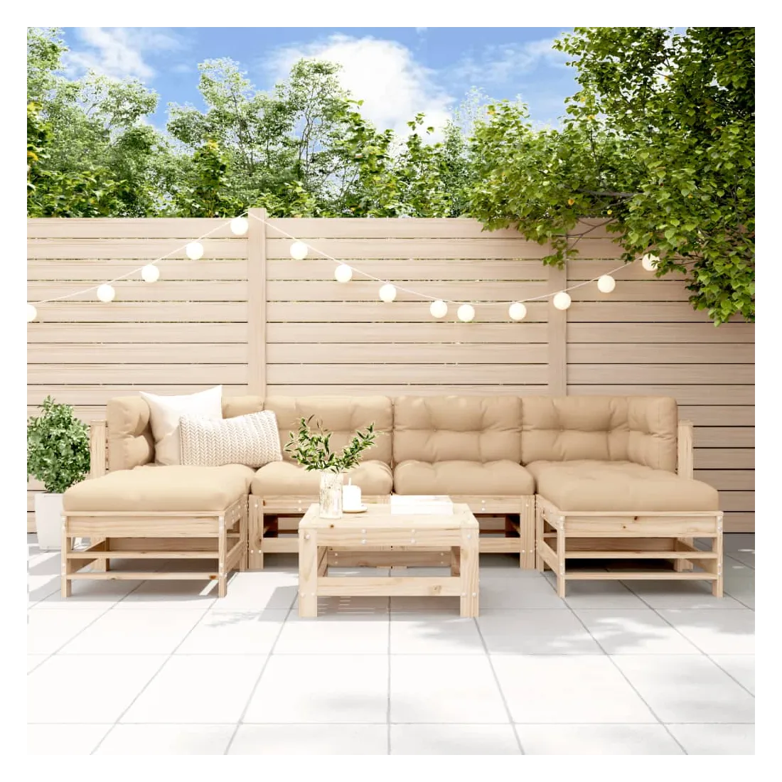 Ce salon de jardin en bois, qui se démarque par son design à lattes, sera un excellent supplément à votre jardin, patio ou terrasse pour profiter d'un moment agréable avec votre famille ou vos amis. Bois de pin massif : le bois de pin massif est un matériau naturel magnifique. Le bois de pin a un grain droit et les nœuds donnent au matériau son aspect caractéristique et rustique.Expérience d'assise confortable : le dossier ajoute un confort d'assise supplémentaire au canapé d'extérieur.Design modulaire : le canapé est flexible et facile à déplacer. Vous pouvez le combiner avec d'autres segments modulaires de la boutique en ligne pour créer vos propres configurations de salon de jardin ! Bon à savoir :Les coussins ne sont pas inclus.Pour que vos meubles d'extérieur restent beaux, nous vous recommandons de les protéger avec une housse imperméable.