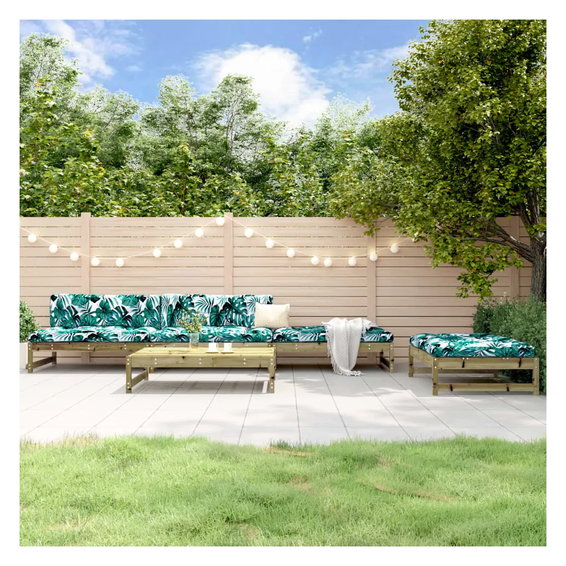 Ce salon de jardin en bois, qui se démarque par son design à lattes, sera un excellent supplément à votre jardin, patio ou terrasse pour profiter d'un moment agréable avec votre famille ou vos amis. Bois imprégné : le bois de pin massif est un matériau naturel magnifique. Le bois de pin a un grain droit et les nœuds lui confèrent un aspect rustique caractéristique. L'imprégnation est un processus de conservation réalisé à l'aide d'autoclaves. Le traitement sous pression augmente la résistance à la pourriture et aux intempéries.Expérience d'assise confortable : le dossier ajoute un confort d'assise supplémentaire au canapé d'extérieur.Design modulaire : le canapé est flexible et facile à déplacer. Vous pouvez le combiner avec d'autres segments modulaires de la boutique en ligne pour créer vos propres configurations de salon de jardin ! Bon à savoir :Les coussins ne sont pas inclus dans la livraison.Pour que vos meubles d'extérieur restent beaux, nous vous recommandons de les protéger avec une housse imperméable.