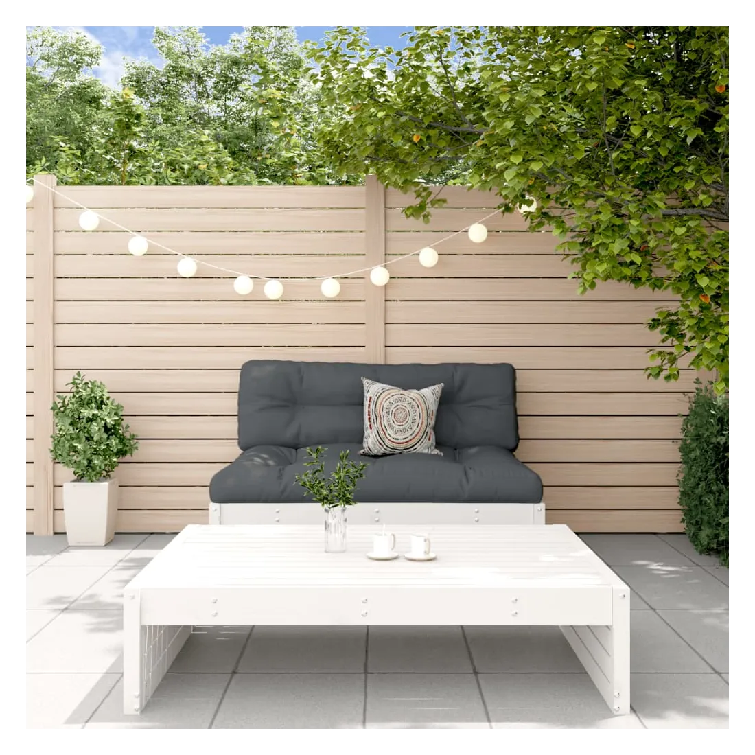 Ce salon de jardin en bois, qui se démarque par son design à lattes, sera un excellent supplément à votre jardin, patio ou terrasse pour profiter d'un moment agréable avec votre famille ou vos amis. Bois de pin massif : le bois de pin massif est un matériau naturel magnifique. Le bois de pin a un grain droit et les nœuds donnent au matériau son aspect caractéristique et rustique.Cadre robuste et stable : le cadre en bois rend l'ensemble de salon robuste et stable pour une utilisation quotidienne à l'extérieur.Expérience d'assise confortable : le dossier ajoute un confort d'assise supplémentaire au canapé d'extérieur.Design modulaire : le canapé est flexible et facile à déplacer. Vous pouvez le combiner avec d'autres segments modulaires de la boutique en ligne pour créer vos propres configurations de salon de jardin ! Bon à savoir :Les coussins ne sont pas inclus dans la livraison.Pour que vos meubles d'extérieur restent beaux, nous vous recommandons de les protéger avec une housse imperméable.