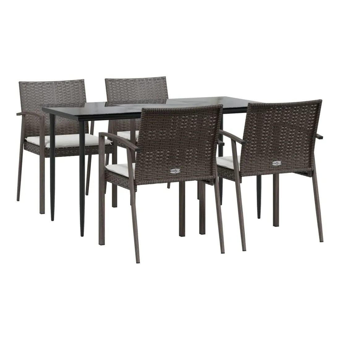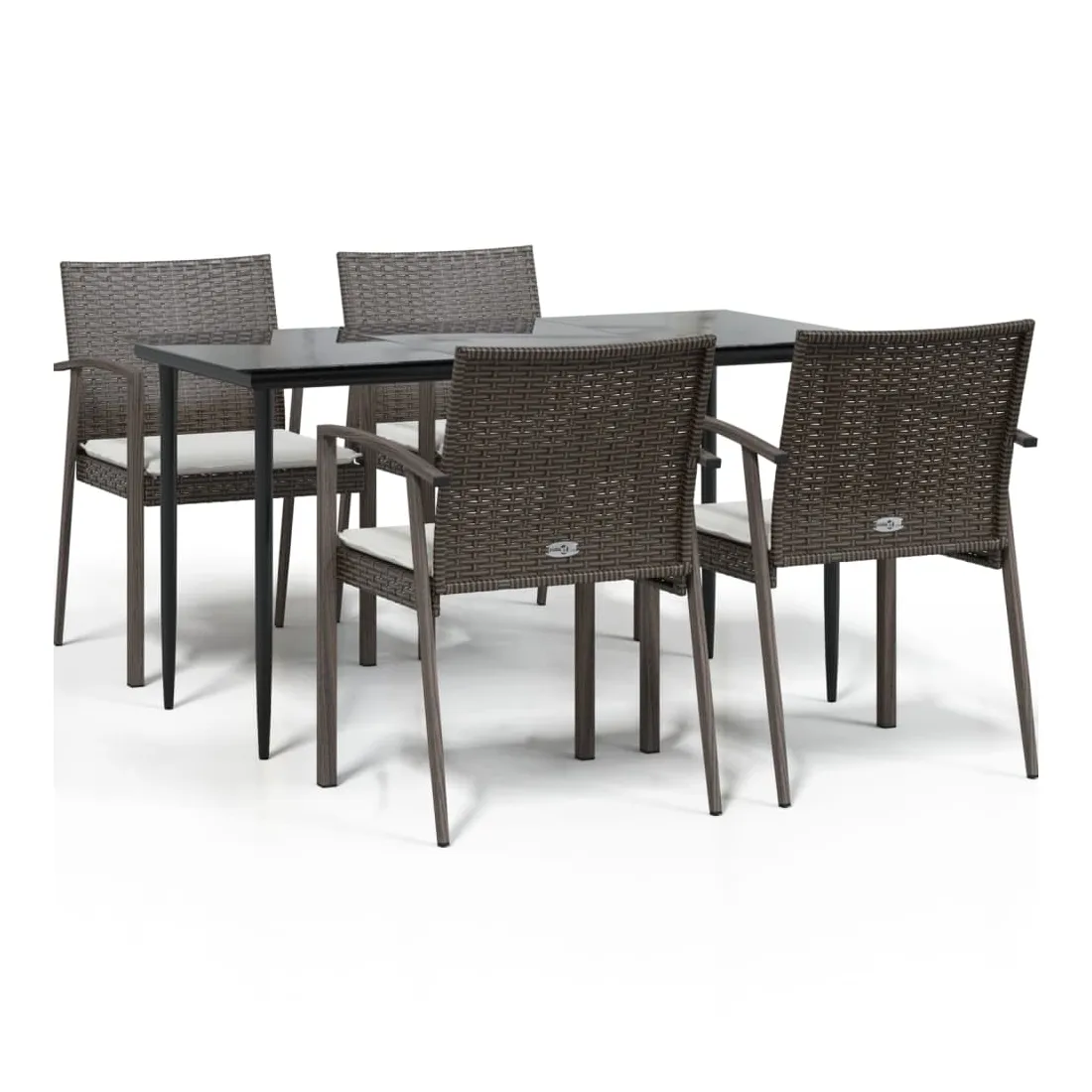 Cet ensemble à manger de jardin, combinant à la fois style et fonctionnalité, est sûrement destiné à être la pièce maîtresse de votre jardin, terrasse et de tout autre espace de vie. Matériau résistant aux intempéries : la résine tressée, également connue sous le nom de rotin poly, résiste aux intempéries et est facile à nettoyer. Elle reste belle à l'extérieur pendant une longue période. Elle offre une excellente qualité, commodité et un aspect esthétique.Cadre robuste et stable : les cadres en acier rendent l'ensemble à manger robuste et stable pour une utilisation quotidienne à l'extérieur.Dessus de table pratique : le plateau lisse de la table à manger est en verre trempé facile à nettoyer avec un chiffon humide. De plus, il offre un excellent support pour contenir vos repas, boissons et autres objets décoratifs.Assise confortable : la chaise de salle à manger est conçue avec des accoudoirs pour vous offrir une expérience d'assise confortable. Le coussin de siège épais et rembourré offre un confort ultime pendant votre temps d'assise. Remarque :Pour que vos meubles d'extérieur restent beaux, nous vous recommandons de les protéger avec une housse imperméable.