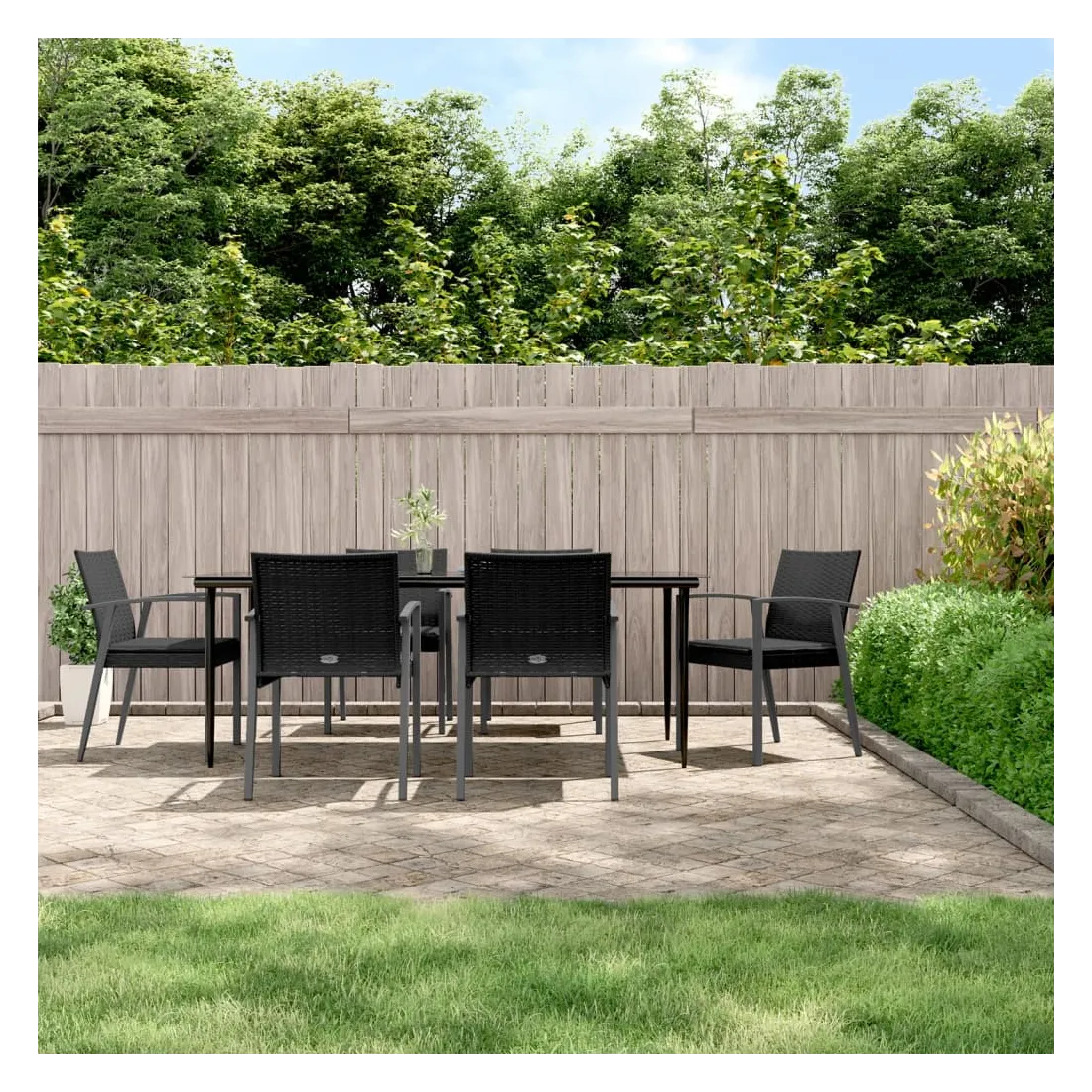 vidaXLCet ensemble à manger de jardin, combinant à la fois style et fonctionnalité, est sûrement destiné à être la pièce maîtresse de votre jardin, terrasse et de tout autre espace de vie. Matériau résistant aux intempéries : la résine tressée, également connue sous le nom de rotin poly, résiste aux intempéries et est facile à nettoyer. Elle reste belle à l'extérieur pendant une longue période. Elle offre une excellente qualité, commodité et un aspect esthétique.Cadre robuste et stable : les cadres en acier rendent l'ensemble à manger robuste et stable pour une utilisation quotidienne à l'extérieur.Dessus de table pratique : le plateau lisse de la table à manger est en verre trempé facile à nettoyer avec un chiffon humide. De plus, il offre un excellent support pour contenir vos repas, boissons et autres objets décoratifs.Assise confortable : la chaise de salle à manger est conçue avec des accoudoirs pour vous offrir une expérience d'assise confortable. Le coussin de siège épais et rembourré offre un confort ultime pendant votre temps d'assise. Remarque :Pour que vos meubles d'extérieur restent beaux, nous vous recommandons de les protéger avec une housse imperméable.