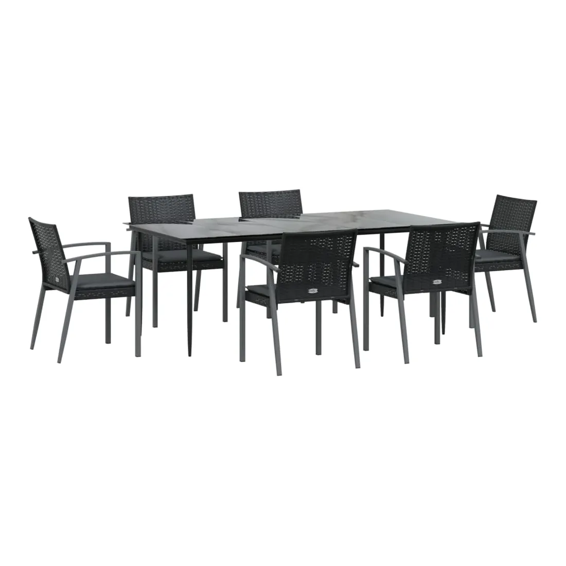 Ensemble à manger de jardin 7 pcs coussins résine tressée acier