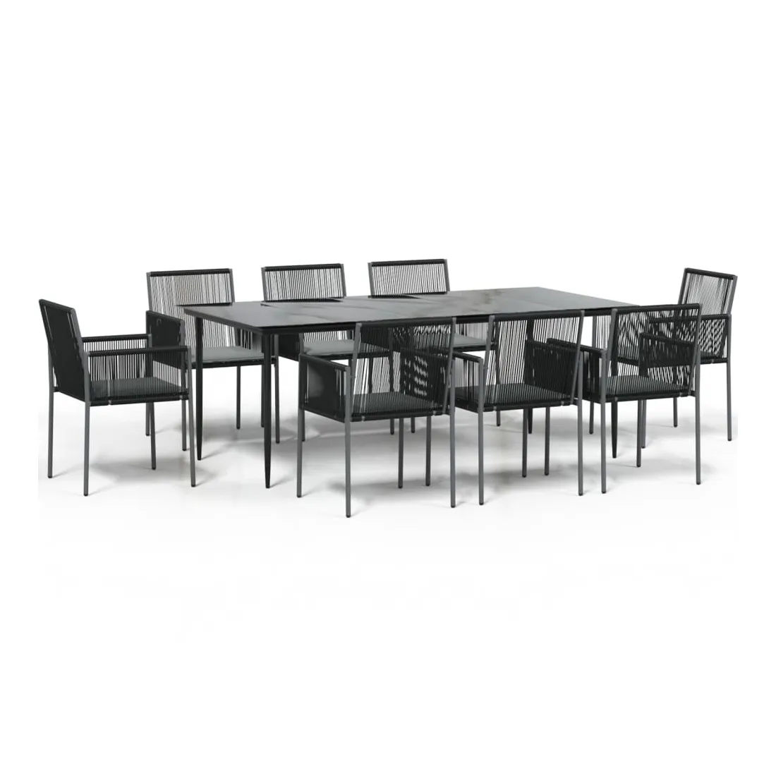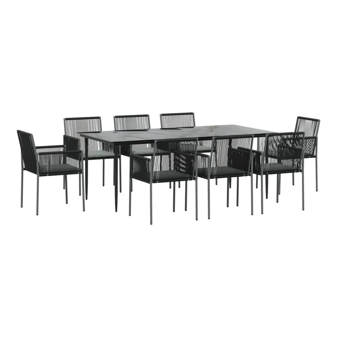 Ensemble à manger de jardin 9 pcs coussins noir rotin et acier