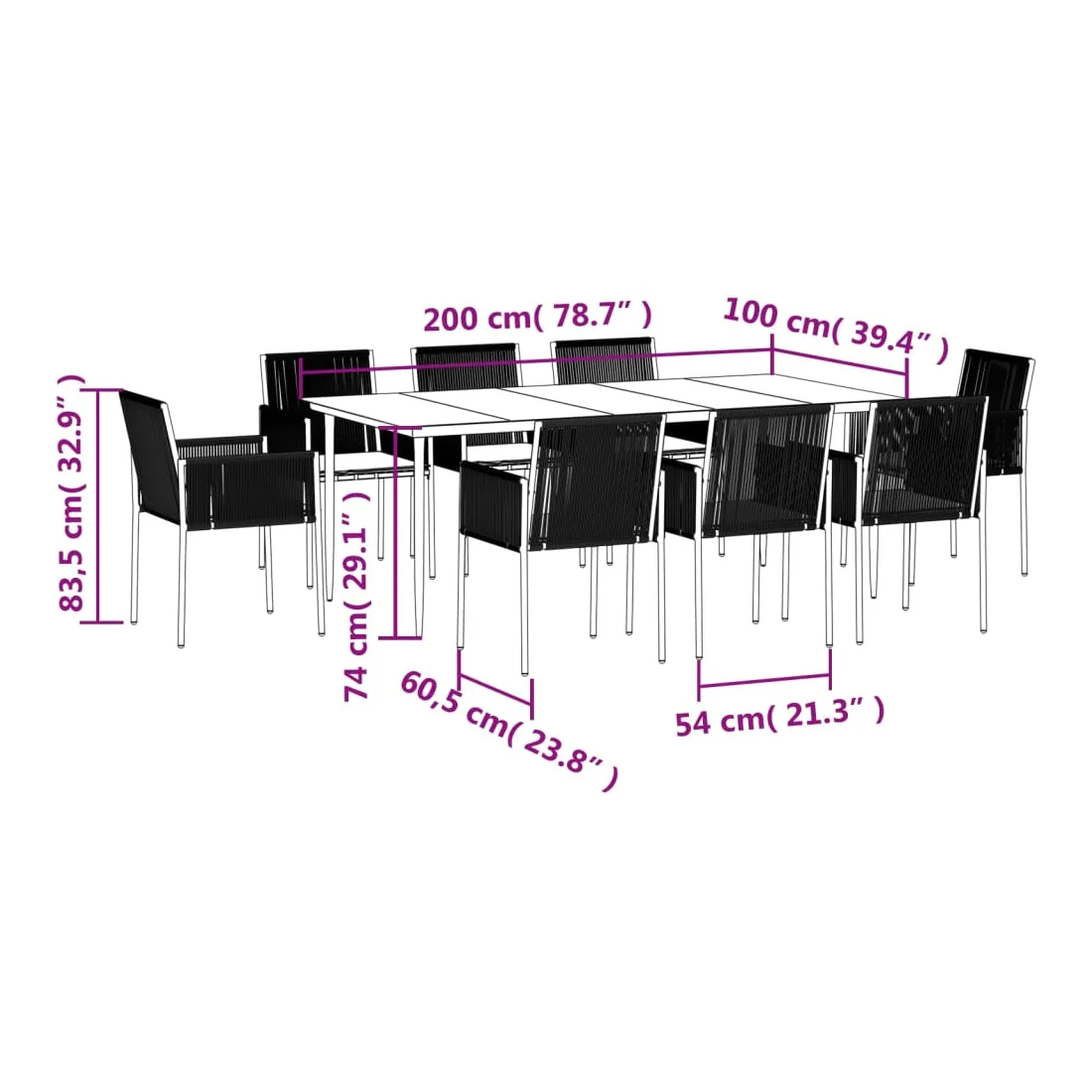 - Dimensions : 200 x 100 x 74 cm (L x l x H)