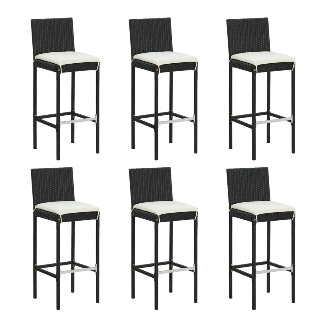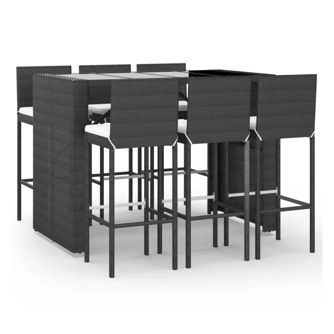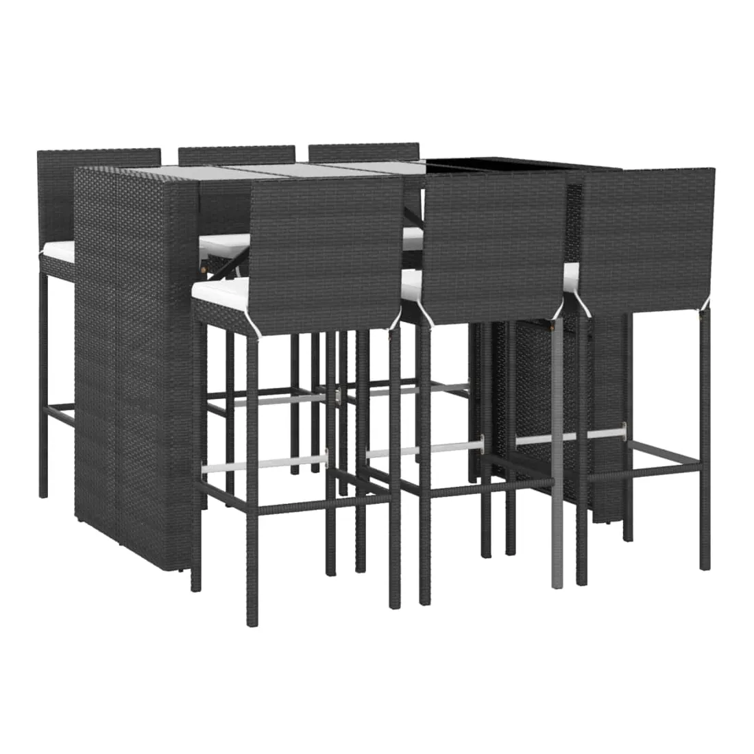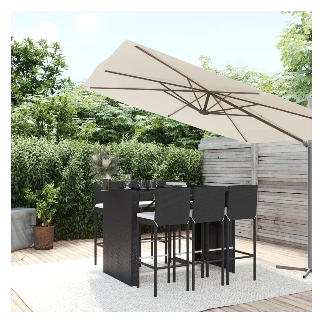 Ensemble de bar de jardin 7 pcs avec coussins noir poly rotin