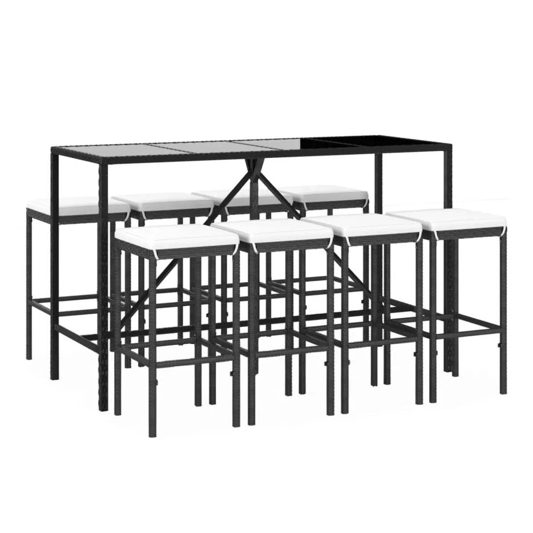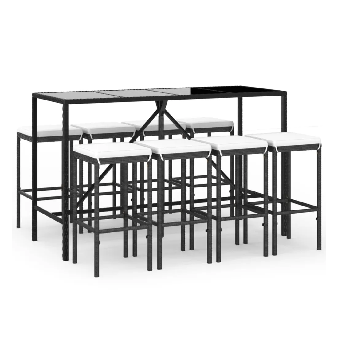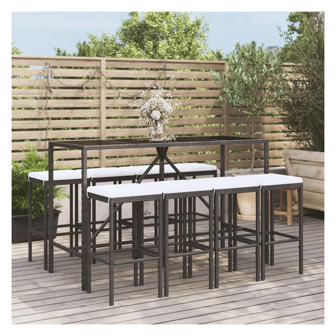 Cet ensemble de bar de jardin tendance, combinant à la fois style et fonctionnalité, est sûrement destiné à être la pièce maîtresse de votre jardin, terrasse et de tout autre espace de vie. Matériau résistant aux intempéries : la résine tressée, également connue sous le nom de rotin poly, résiste aux intempéries et est facile à nettoyer. Elle reste belle à l'extérieur pendant une longue période. Elle offre une excellente qualité, commodité et un aspect esthétique.Assise confortable : le tabouret de bar est conçu avec un repose-pieds intégré pour vous offrir une assise confortable. Le coussin de siège bien rembourré offre un confort ultime pendant votre temps assis.Dessus en verre trempé : le dessus est en verre trempé, ce qui le rend facile à nettoyer. De plus, il offre un excellent support pour placer vos boissons, collations et vos décorations préférées.Cadre robuste et stable : les cadres en acier enduit de poudre rendent l'ensemble de pub robuste et stable pour une utilisation quotidienne à l'extérieur.Applications larges : la table et le tabouret de bar, avec leur design remarquable, créent un aspect général agréable qui s'intègre sans effort dans n'importe quel décor. Bon à savoir :Pour faciliter au maximum le montage, chaque produit est livré avec des instructions.Remarque :Pour que vos meubles d'extérieur restent beaux, nous vous recommandons de les protéger avec une housse imperméable.
