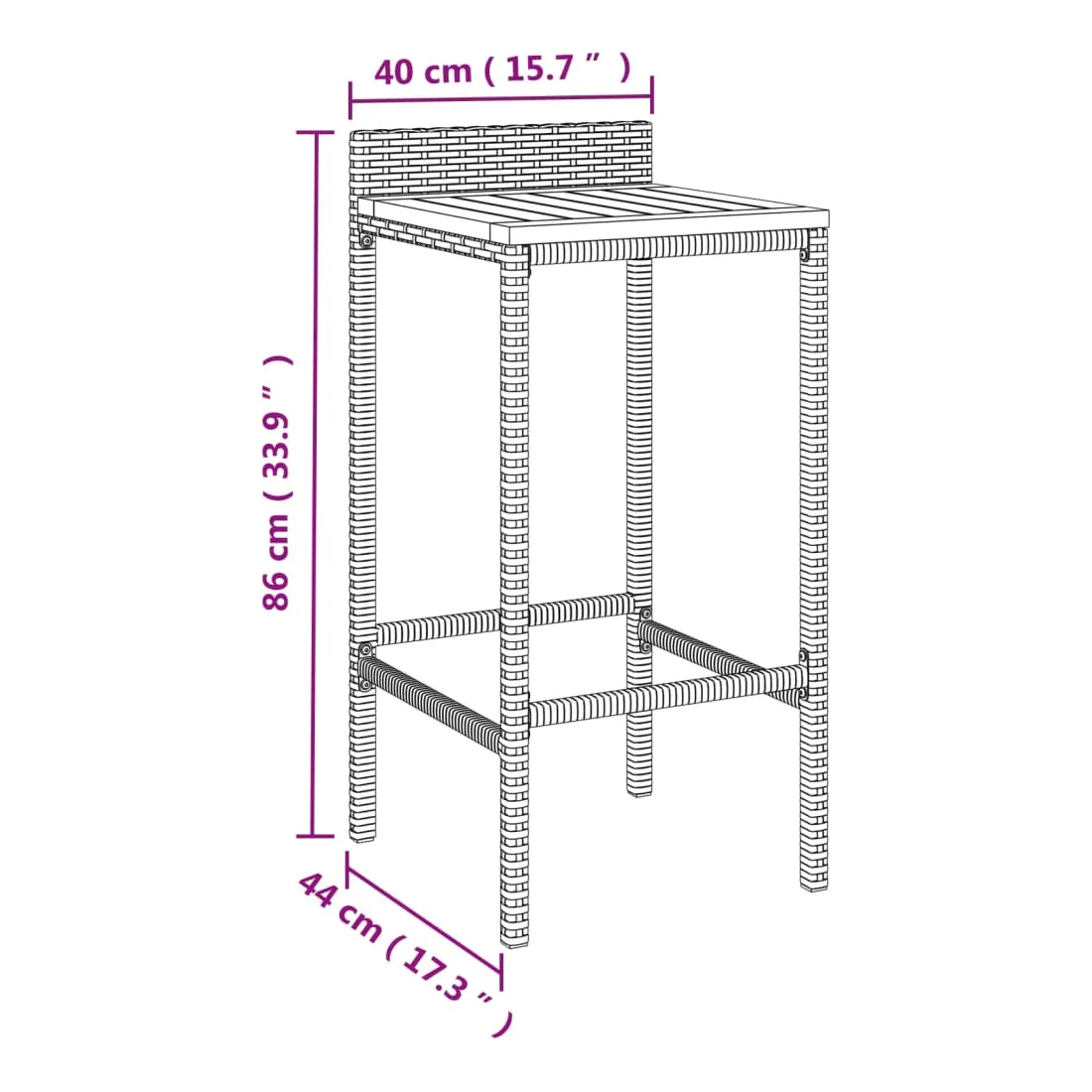 Cet ensemble de bar de jardin tendance, combinant à la fois style et fonctionnalité, est sûrement destiné à être la pièce maîtresse de votre jardin, terrasse et de tout autre espace de vie. Matériau résistant aux intempéries : la résine tressée, également connue sous le nom de rotin poly, résiste aux intempéries et est facile à nettoyer. Elle reste belle à l'extérieur pendant une longue période. Elle offre une excellente qualité, commodité et un aspect esthétique.Assise confortable : le tabouret de bar est conçu avec un repose-pied intégré pour vous offrir une expérience d'assise confortable. L'assise en bois confère au tabouret un aspect naturel et agréable tout en assurant sa stabilité.Table pratique : la table de bar ronde est idéale pour accueillir vos boissons, vos snacks et vos décorations préférées.Cadre robuste et stable : les cadres en acier enduit de poudre rendent l'ensemble de pub robuste et stable pour une utilisation quotidienne à l'extérieur.Applications larges : la table et les tabourets de bar, avec leur design remarquable, créent un aspect général agréable qui s'intègre sans effort dans n'importe quel décor. Bon à savoir :Pour faciliter au maximum le montage, chaque produit est livré avec des instructions.Remarque :Pour que vos meubles d'extérieur restent beaux, nous vous recommandons de les protéger avec une housse imperméable.