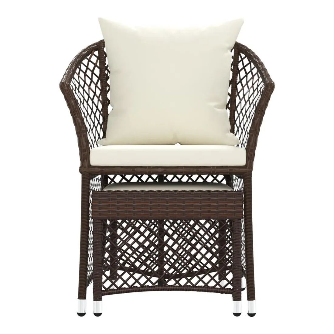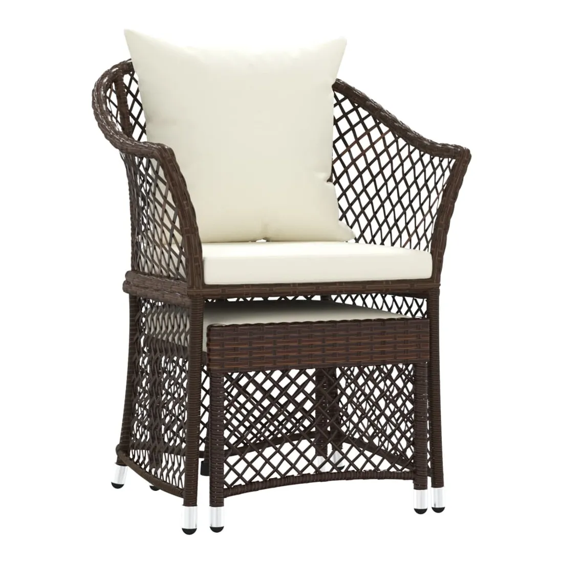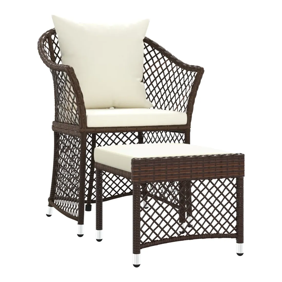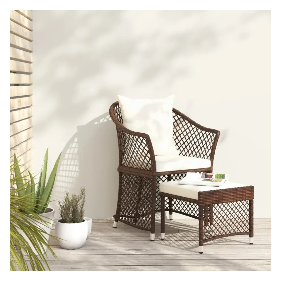 Profitez d'un moment agréable dans votre espace extérieur avec cet ensemble de salon de jardin ! C'est un complément parfait à votre jardin et à votre terrasse, créant une impression durable ! Matériau haut de gamme : la résine tressée est un matériau de résistance exceptionnelle et durable dans différentes conditions météorologiques.Cadre en acier : le cadre en acier assure la robustesse et la stabilité de l'ensemble de salon extérieur.Coussins moelleux : les coussins épais et amovibles du salon de jardin sont inclus pour offrir le plus grand confort d'assise.Accoudoirs et dossier confortables : le dossier et les accoudoirs ronds permettent à vos bras et à votre dos de se reposer confortablement.Tabouret pratique : vous pouvez vous détendre et y mettre vos pieds grâce au tabouret inclus. Vous pouvez également placer le tabouret n'importe où, selon vos préférences. Bon à savoir :Pour faciliter au maximum le montage, chaque produit est livré avec des instructions. Remarque :Pour que vos meubles d'extérieur restent beaux, nous vous recommandons de les protéger avec une housse imperméable.