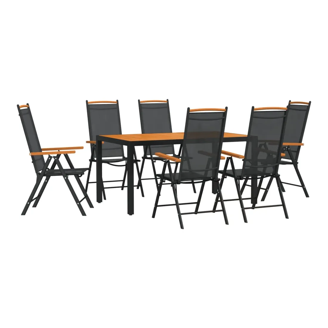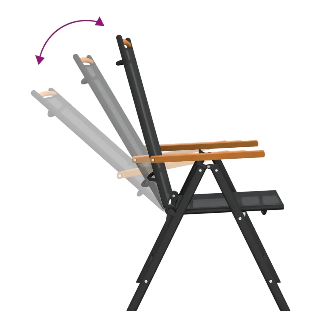 Cet ensemble de salle à manger de jardin à la fois pratique et élégant est parfait pour vous détendre ou dîner dans votre jardin ou sur votre terrasse. Matériau respirant : les sièges sont confortables grâce au textilène respirant. Le tissu textilène permet à l'air de circuler librement à travers lui tout en étant résistant aux rayons UV. Le textilène est donc idéal par temps chauds. En tant que matériau durable et solide, il est très résistant aux déchirures, aux perforations et à la moisissure.Cadre robuste : le cadre en aluminium revêtu de poudre rend l'ensemble de salle à manger robuste et durable pour une utilisation à l'extérieur.Dossier réglable : les dossiers des chaises de jardin sont réglables en 7 positions afin que vous puissiez toujours trouver la position la plus confortable.Fonction pliable : la chaise inclinable peut être pliée pour gagner de la place lorsqu'elle n'est pas utilisée.Table pratique : la table à manger est dotée d'un dessus de table en WPC, facile à nettoyer et adapté à une utilisation en plein air. Le dessus de table robuste est parfait pour placer des repas, des boissons, des vases, des coupes de fruits ou d'autres objets décoratifs. Bon à savoir :Pour que vos meubles d'extérieur restent beaux, nous vous recommandons de les protéger avec une housse imperméable.