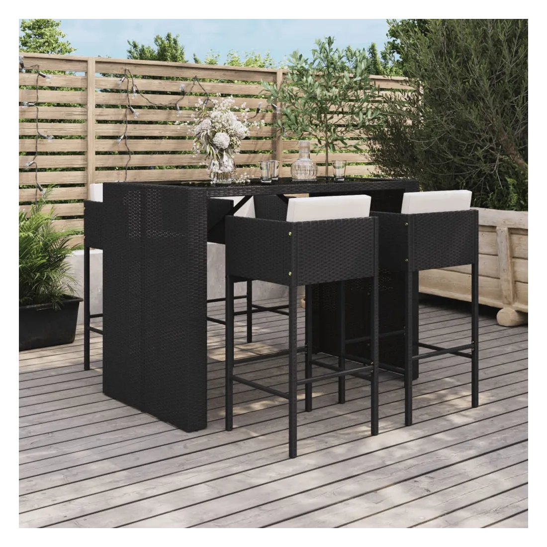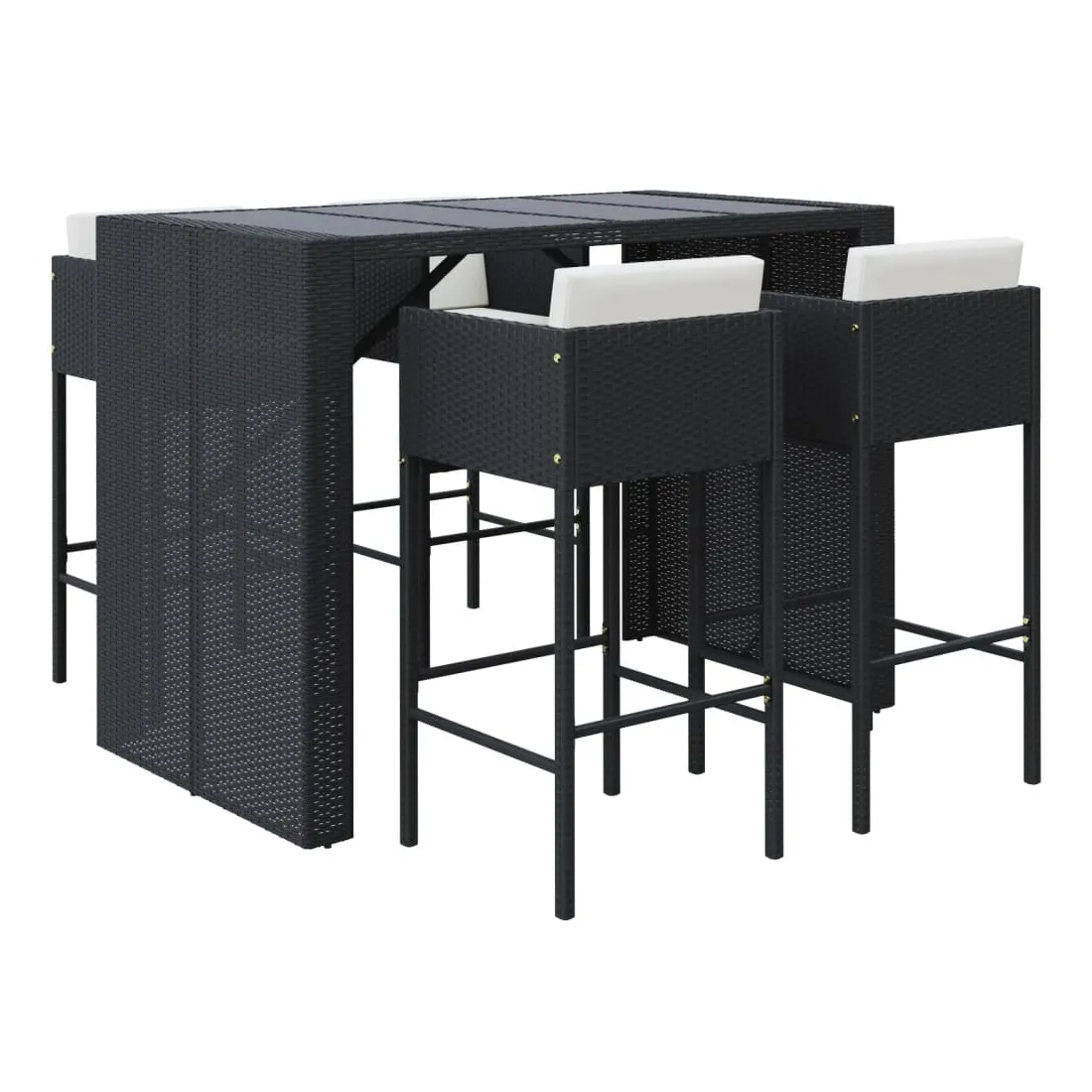 Ensemble de bar de jardin 5 pcs avec coussins noir poly rotin