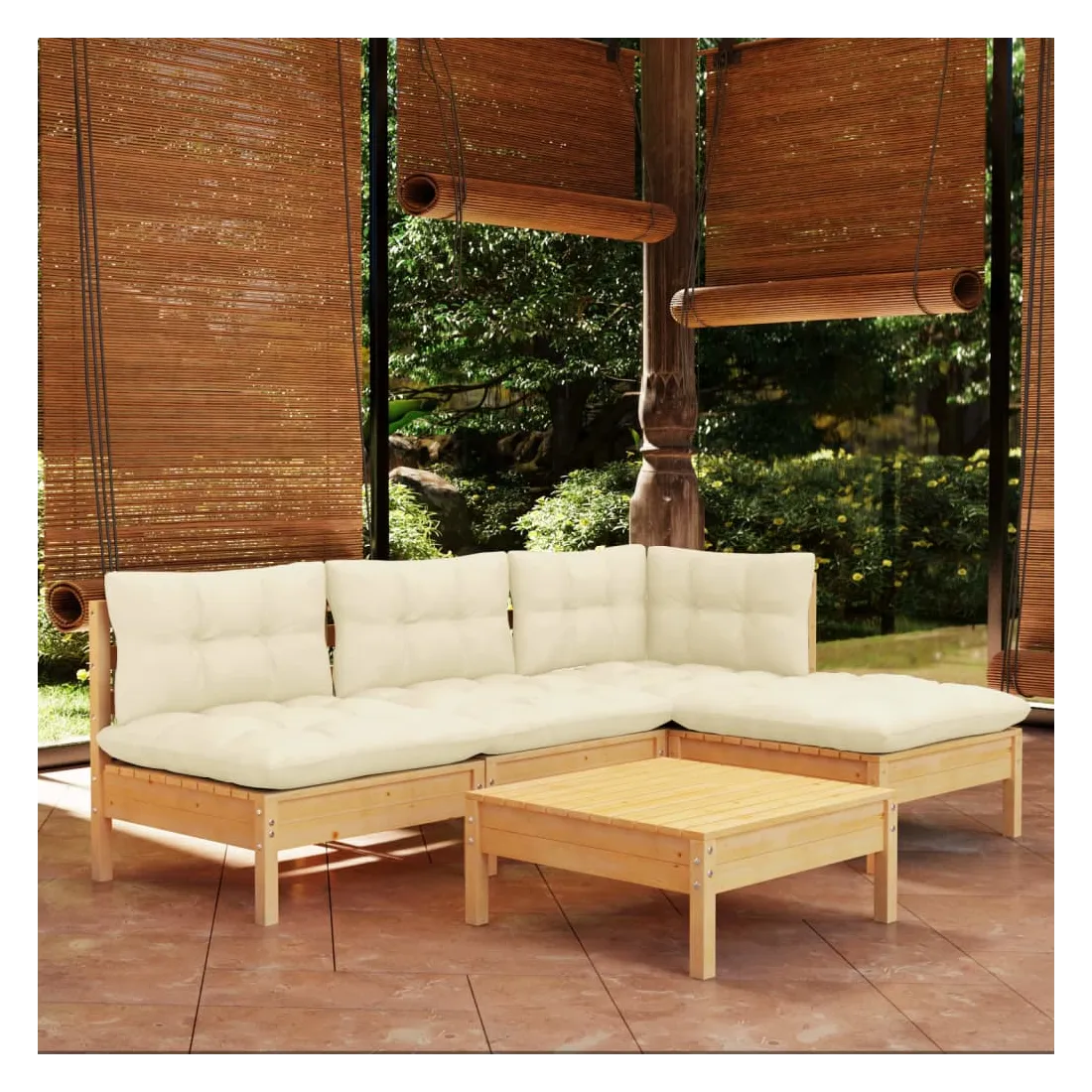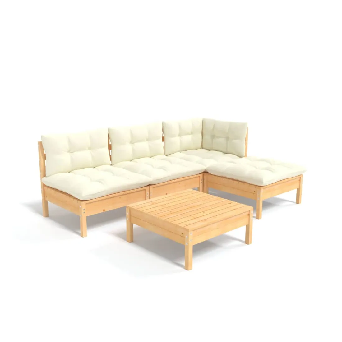 Cet ensemble de salon de jardin en bois est un choix excellent pour vous détendre et profiter du bon temps, faire une sieste ou discuter avec votre famille ou vos amis. Le salon de patio est fabriqué en bois de pin massif, ce qui le rend robuste et stable. Les coussins ajoutent un confort supplémentaire. Vous pouvez le combiner avec d’autres segments modulaires pour créer vos propres configurations de salon de jardin ! Remarque : afin de prolonger la durée de vie des meubles d'extérieur, nous vous recommandons de les protéger avec une housse imperméable.