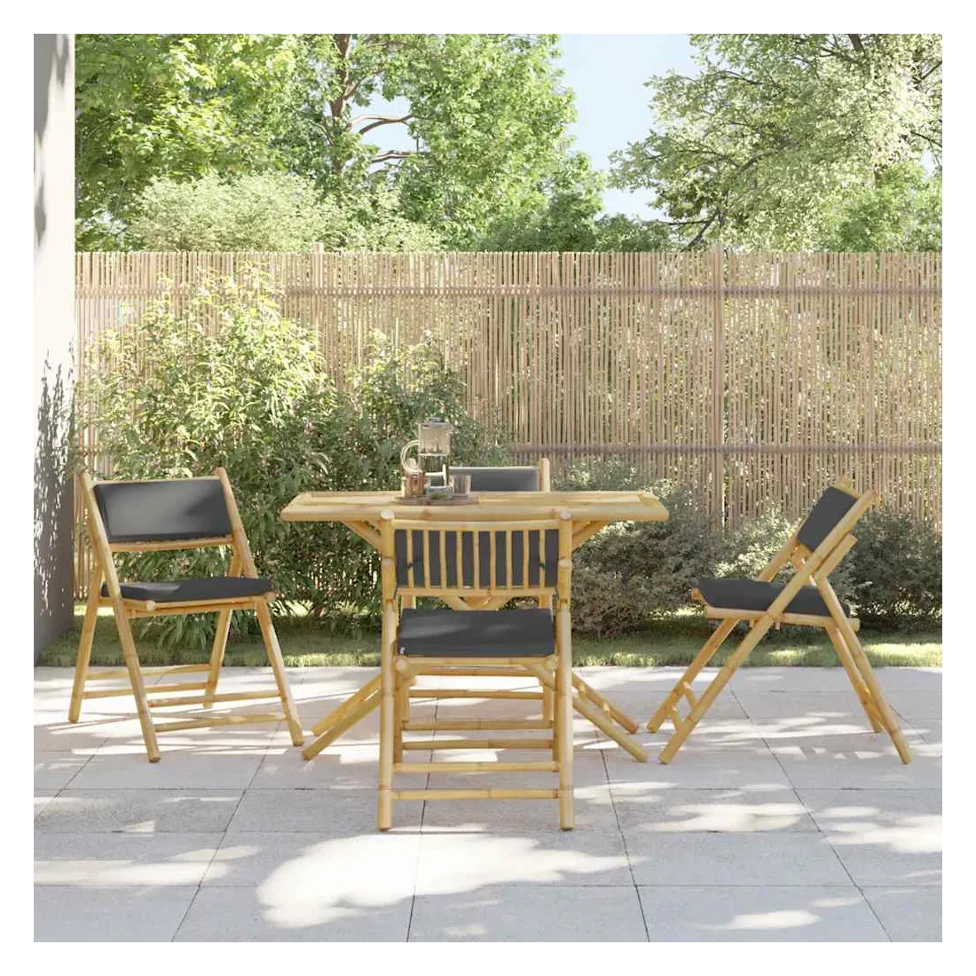 Savourez un café ou discutez avec votre famille et vos amis dans le jardin, l'arrière-cour ou sur le balcon avec cet ensemble de bistro confortable ! Matériau durable : le bambou est connu pour sa flexibilité et sa dureté. Les meubles en bambou sont une bonne option lorsque vous voulez des meubles solides fabriqués à partir de matériaux naturels.Doux et durable : le tissu présente un aspect simple et épuré tout en restant respirant et durable.Expérience d'assise confortable : cet ensemble de meubles d'extérieur, doté de coussins épais, offre une expérience d'assise confortable.Design pliable : l'ensemble de bistro peut être facilement plié lorsqu'il n'est pas utilisé pour faciliter le rangement et le transport.Housse amovible et lavable : ces coussins de siège sont dotés de housses amovibles pour un lavage et un entretien faciles. Les housses de coussin ont un rabat à l'arrière pour une fixation facile aux dossiers. Bon à savoir :Pour que vos meubles d'extérieur restent beaux, nous vous recommandons de les protéger avec une housse imperméable.