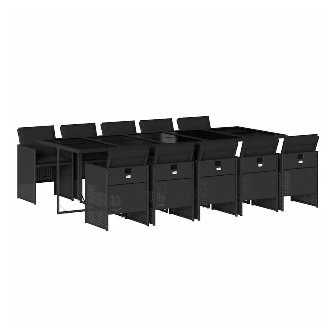 Ensemble à manger de jardin 11 pcs coussins noir résine tressée