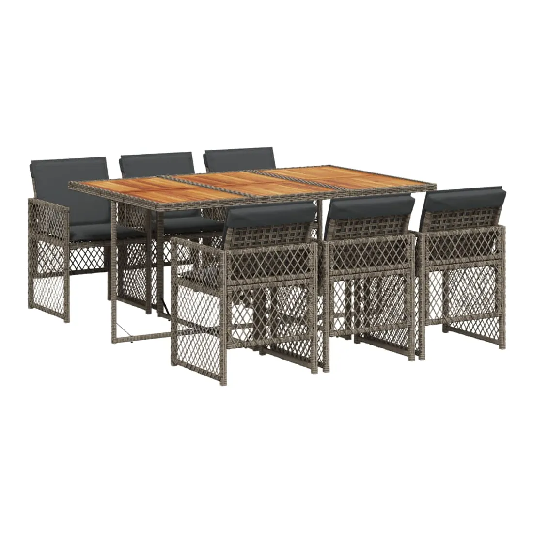 Cet ensemble de salle à manger de jardin est un excellent choix pour les repas en plein air ou pour vous détendre dans le jardin, l'arrière-cour ou le patio. Matériau durable : la résine tressée, également connue sous le nom de poly rotin, est un matériau synthétique solide et nécessitant peu d'entretien qui ressemble au rotin naturel. Elle est légère, facile à nettoyer et couramment utilisée pour les meubles d'extérieur en raison de sa durabilité et de ses propriétés de résistance aux intempéries. Dessus stable et facile à nettoyer : cette table de jardin a un dessus en bois d'acacia robuste, durable et facile à nettoyer avec un chiffon humide. Rangement compact : ces chaises sont dotées d'un dossier rabattable, ce qui permet de les ranger facilement sous la table. Une fois pliées, elles se rangent parfaitement sous la table, formant un cube peu encombrant. Expérience d'assise confortable : ce mobilier d'extérieur, doté de coussins épais, offre une expérience d'assise confortable. Housse amovible et lavable : ces coussins de siège sont dotés de housses amovibles pour un lavage et un entretien faciles. Les housses de coussin de chaise ont un rabat à l'arrière pour une fixation facile aux chaises. Bon à savoir :Pour que vos meubles d'extérieur restent beaux, nous vous recommandons de les protéger avec une housse imperméable.
