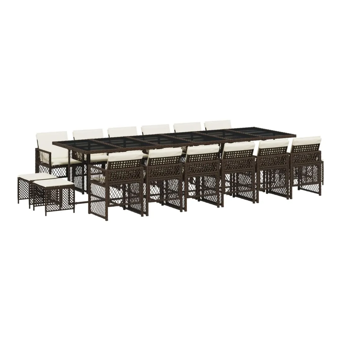 Cet ensemble de salle à manger de jardin est un excellent choix pour les repas en plein air ou pour vous détendre dans le jardin, l'arrière-cour ou le patio. Matériau durable : la résine tressée, également connue sous le nom de poly rotin, est un matériau synthétique solide et nécessitant peu d'entretien qui ressemble au rotin naturel. Elle est légère, facile à nettoyer et couramment utilisée pour les meubles d'extérieur en raison de sa durabilité et de ses propriétés de résistance aux intempéries. Dessus en verre : le dessus de la table d'extérieur est fabriqué en verre trempé solide et durable, ce qui le rend facile à nettoyer avec un chiffon humide et ajoute une touche d'élégance à votre espace extérieur. Rangement compact : ces chaises sont dotées d'un dossier rabattable, ce qui permet de les ranger facilement sous la table. Une fois pliées, elles se rangent parfaitement sous la table, formant un cube peu encombrant. De plus, les tabourets peuvent également être rangés sous les chaises, maximisant encore davantage l'efficacité de l'espace. Expérience d'assise confortable : ce mobilier d'extérieur, doté de coussins épais, offre une expérience d'assise confortable. Housse amovible et lavable : ces coussins de siège sont dotés de housses amovibles pour un lavage et un entretien faciles. Les housses de coussin de chaise ont un rabat à l'arrière pour une fixation facile aux chaises. Bon à savoir :Pour que vos meubles d'extérieur restent beaux, nous vous recommandons de les protéger avec une housse imperméable.