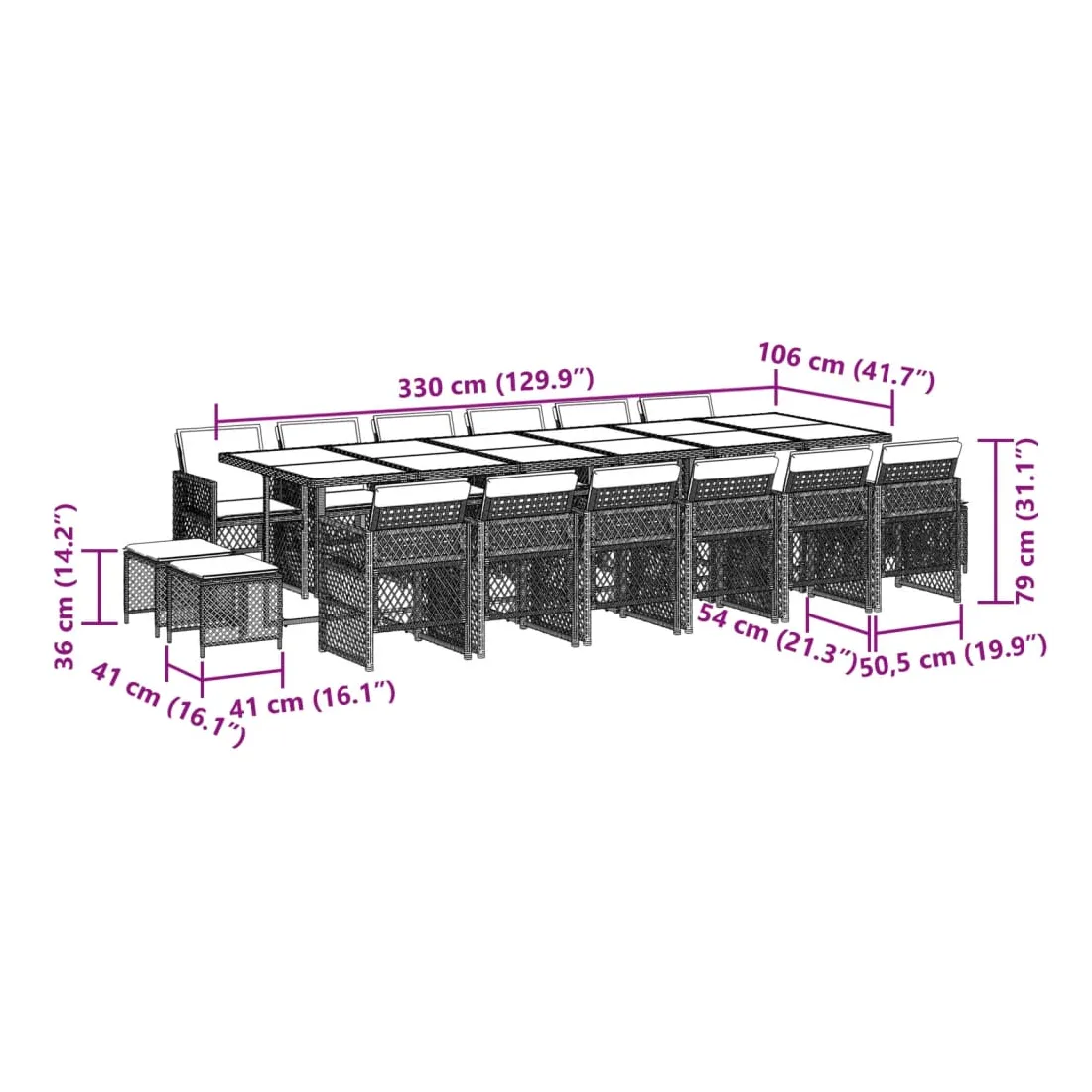 - Dimensions : 330 x 106 x 73 cm (L x l x H)