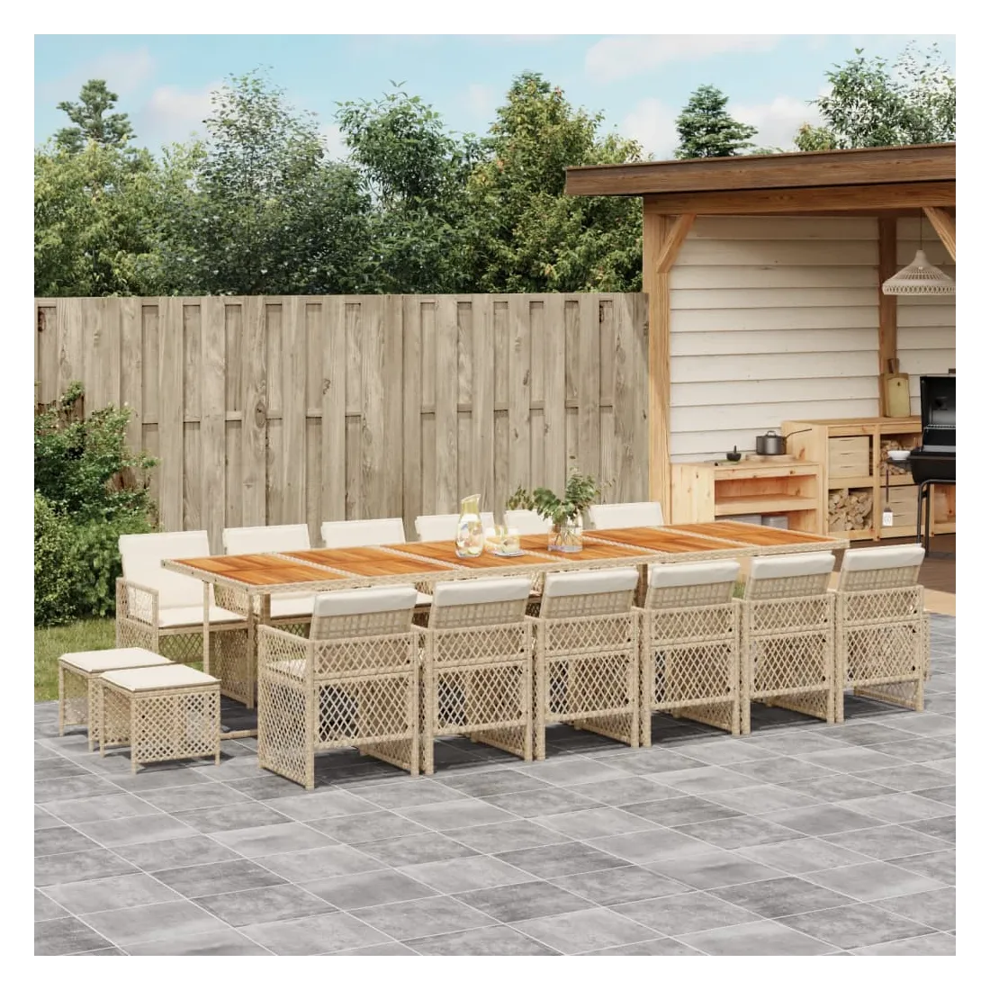Cet ensemble de salle à manger de jardin est un excellent choix pour les repas en plein air ou pour vous détendre dans le jardin, l'arrière-cour ou le patio. Matériau durable : la résine tressée, également connue sous le nom de poly rotin, est un matériau synthétique solide et nécessitant peu d'entretien qui ressemble au rotin naturel. Elle est légère, facile à nettoyer et couramment utilisée pour les meubles d'extérieur en raison de sa durabilité et de ses propriétés de résistance aux intempéries. Dessus stable et facile à nettoyer : cette table de jardin a un dessus en bois d'acacia robuste, durable et facile à nettoyer avec un chiffon humide. Rangement compact : ces chaises sont dotées d'un dossier rabattable, ce qui permet de les ranger facilement sous la table. Une fois pliées, elles se rangent parfaitement sous la table, formant un cube peu encombrant. De plus, les tabourets peuvent également être rangés sous les chaises, maximisant encore davantage l'efficacité de l'espace. Expérience d'assise confortable : ce mobilier d'extérieur, doté de coussins épais, offre une expérience d'assise confortable. Housse amovible et lavable : ces coussins de siège sont dotés de housses amovibles pour un lavage et un entretien faciles. Les housses de coussin de chaise ont un rabat à l'arrière pour une fixation facile aux chaises. Bon à savoir :Pour que vos meubles d'extérieur restent beaux, nous vous recommandons de les protéger avec une housse imperméable.