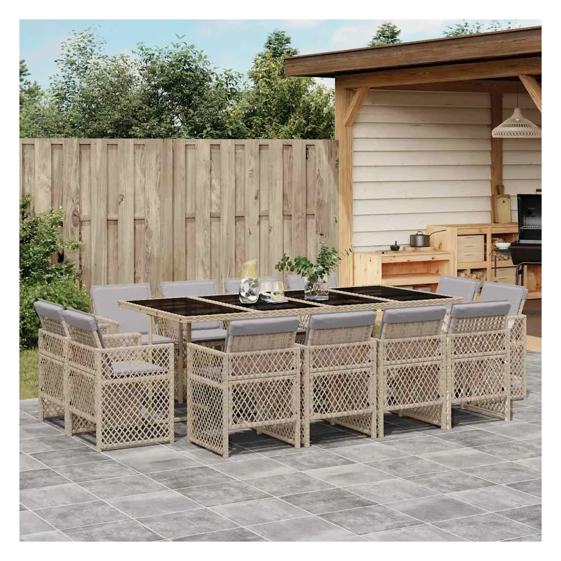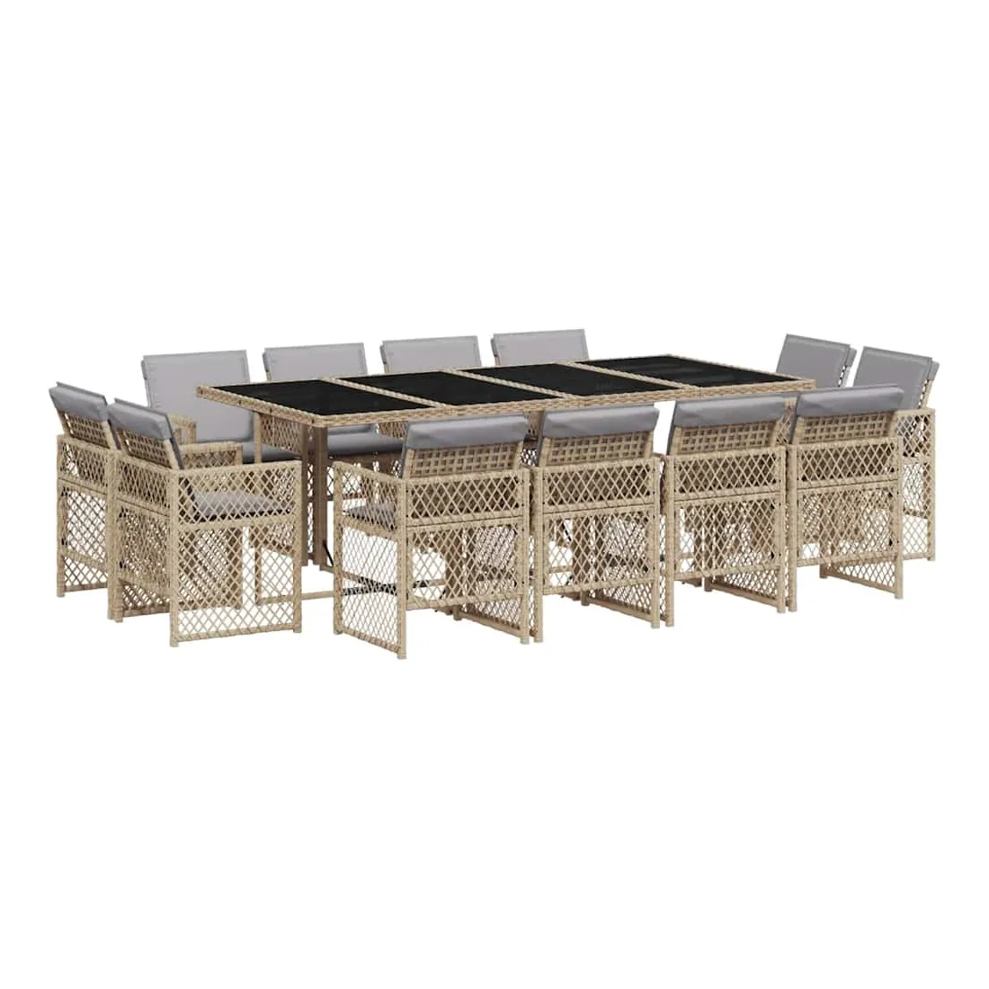 Ensemble à manger de jardin coussins 13 pcs mélange beige rotin