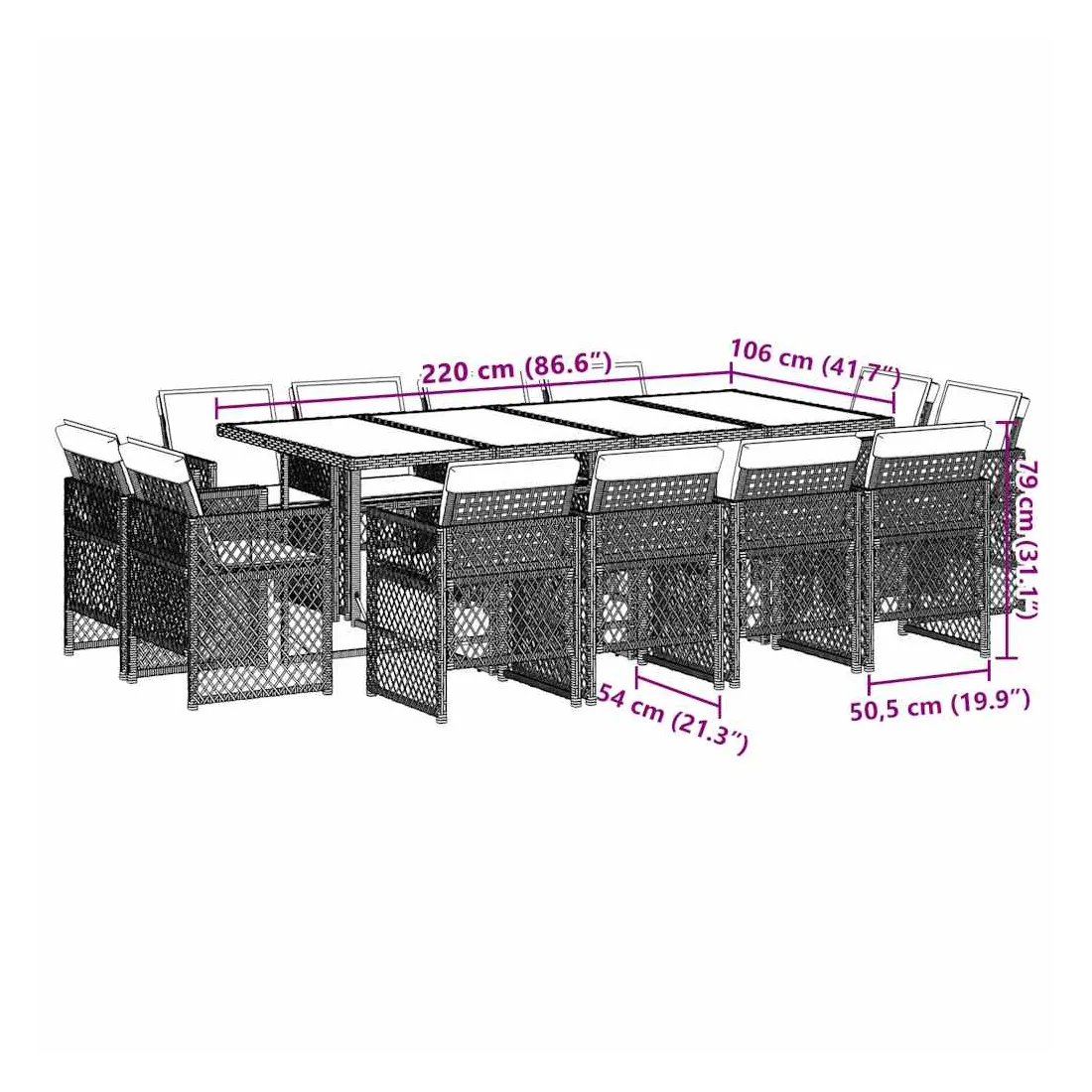 vidaXLCet ensemble de salle à manger de jardin est un excellent choix pour les repas en plein air ou pour vous détendre dans le jardin, dans l'arrière-cour ou sur la terrasse. Matériau durable : la résine tressée, également connue sous le nom de poly rotin, est un matériau synthétique solide et nécessitant peu d'entretien qui ressemble au rotin naturel. Elle est légère, facile à nettoyer et couramment utilisée pour les meubles d'extérieur en raison de sa durabilité et de ses propriétés de résistance aux intempéries.Rangement compact : ces chaises sont dotées d'un dossier à rabat qui peut être rabattu pour un rangement compact.Expérience d'assise confortable : ce mobilier d'extérieur, doté de coussins épais, offre une expérience d'assise confortable.Housse amovible et lavable : ces coussins de siège sont dotés de housses amovibles pour un lavage et un entretien faciles. Les housses de coussin de chaise ont un rabat à l'arrière pour une fixation facile aux chaises.Dessus stable et facile à nettoyer : cette table de jardin est dotée d'un dessus en verre trempé robuste, durable et facile à nettoyer à l'aide d'un chiffon humide. Bon à savoir : Pour que vos meubles d'extérieur restent beaux, nous vous recommandons de les protéger avec une housse imperméable.